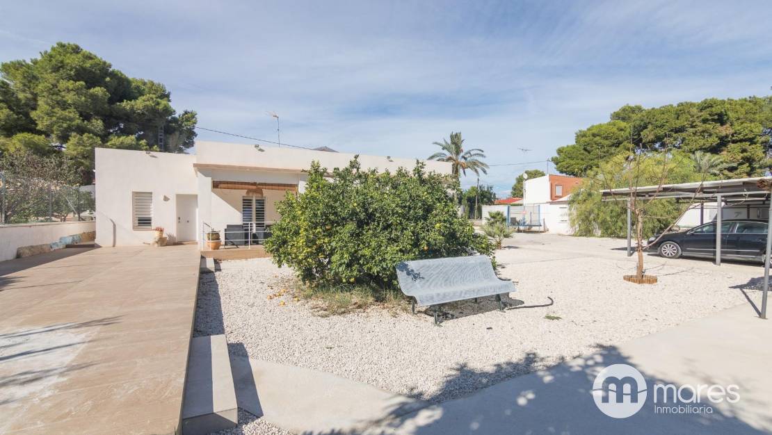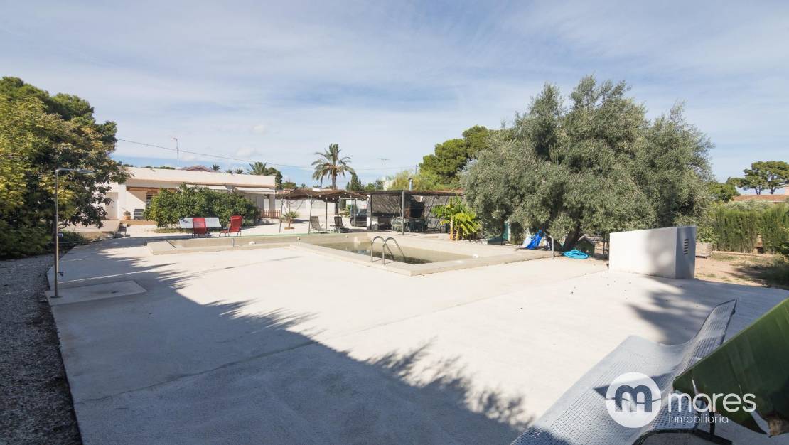 Plot of 1,953 m² with private pool, outdoor space and parking area. Quiet and safe residential setting, excellent access from Camino Viejo de Crevillente. Only 4 minutes from L'Aljub and 10 minutes to Elche city centre.
