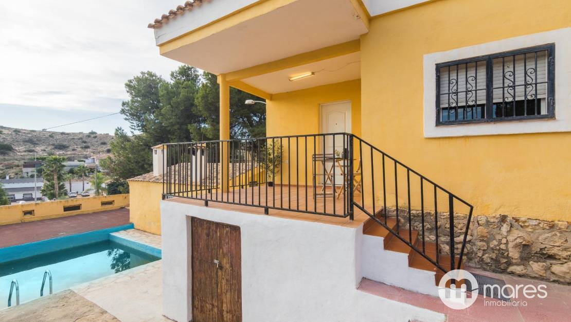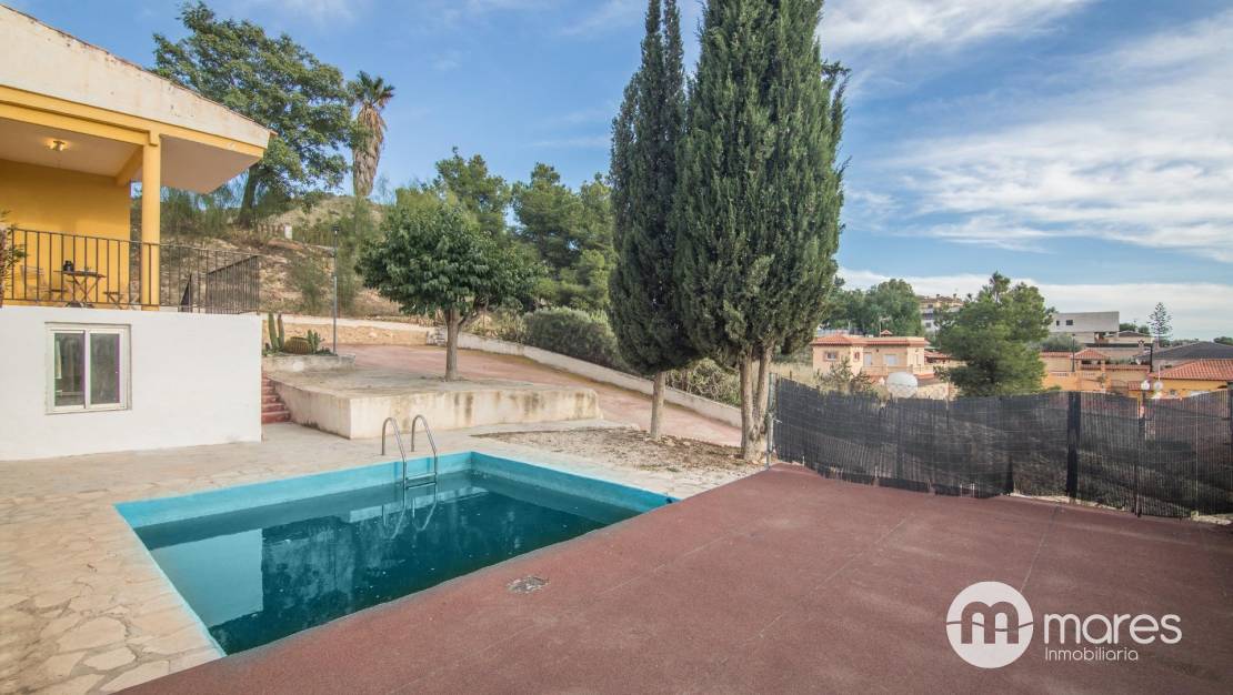 Detached house located in the quiet area of the Montesol Urbanisation, on the Elche–Aspe road, set on a fully fenced plot of approximately 1,440 m² with fruit trees. The property offers privacy, spaciousness, and above all the opportunity to enjoy the surrounding mountain nature and the pleasant Mediterranean climate that characterises the area. The outdoor spaces include a swimming pool, a porch, and a barbecue area, creating a perfect setting to enjoy time with family or friends in a natural and open environment.