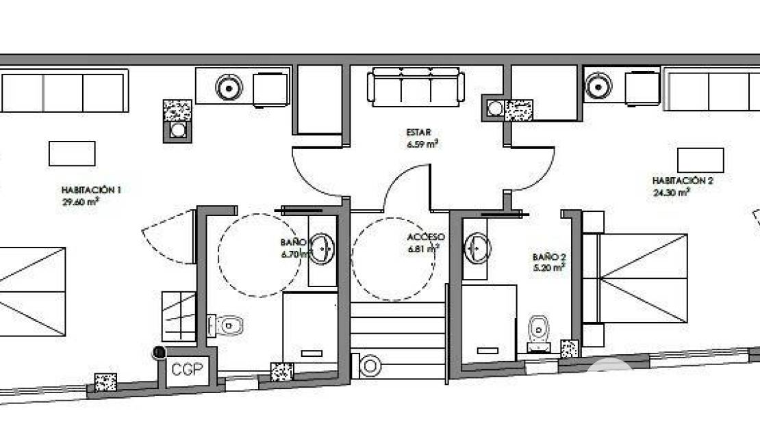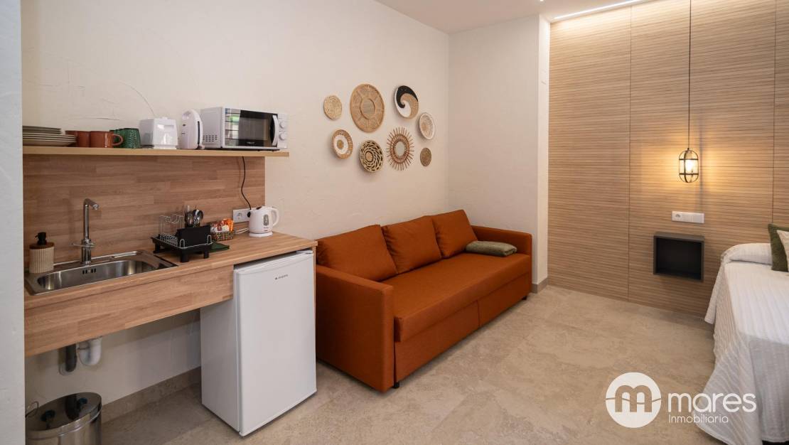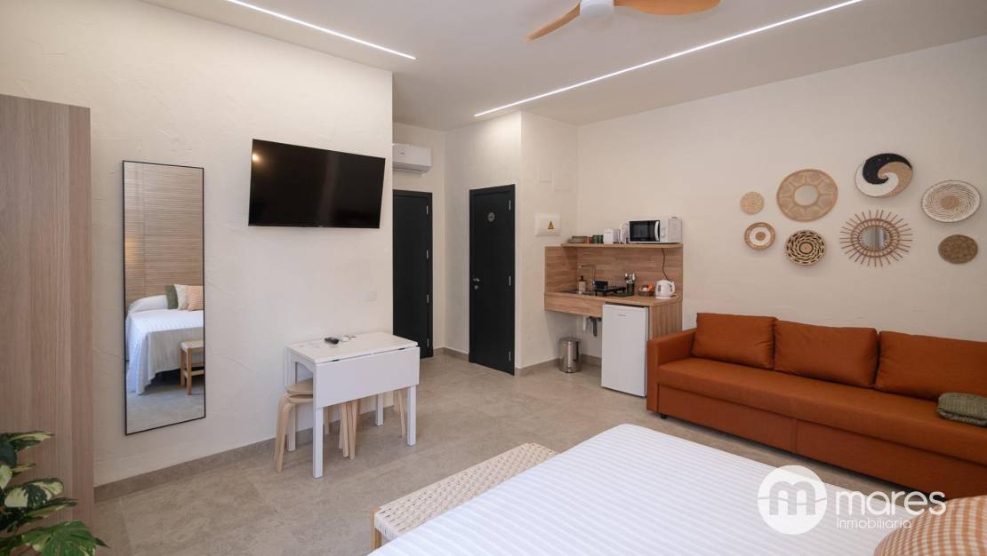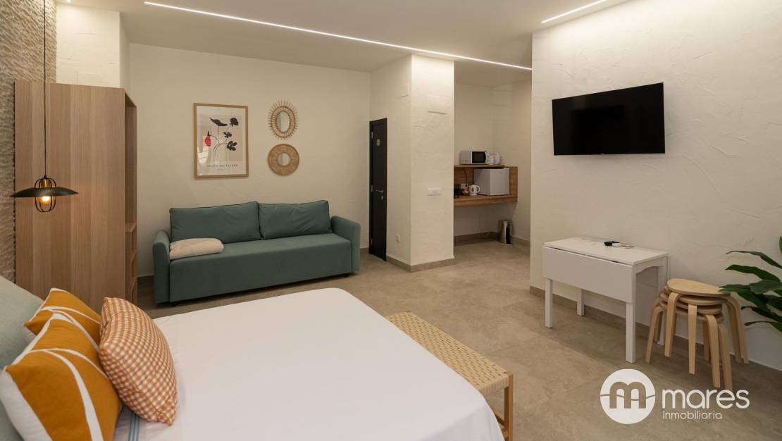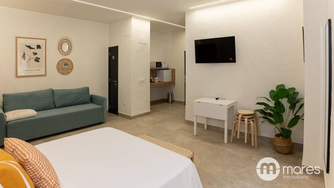 Two-bedroom loft-style guesthouse (37 m² and 31 m²), accommodating up to four people per room (2 bedrooms + 2 sofa beds), located 50 meters from Levante Beach and 300 meters from La Glorieta. Currently operating. Opened summer 2025. High-quality materials, air conditioning, TV, LED lighting, Wi-Fi, and very spacious bathrooms.