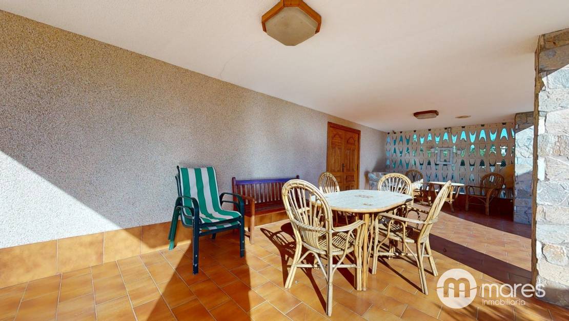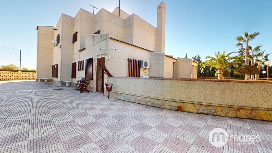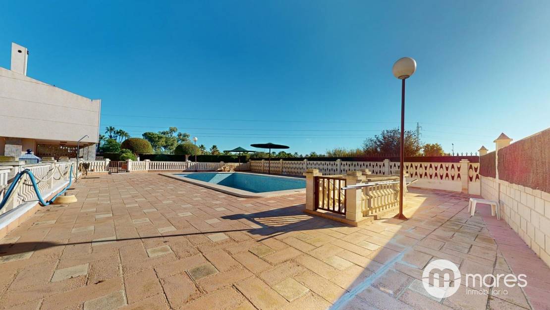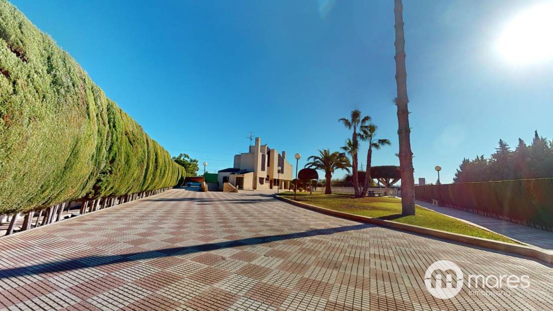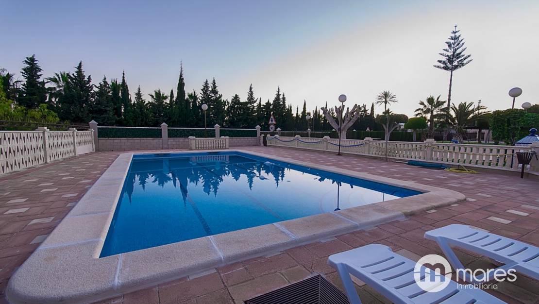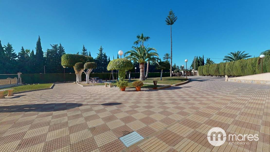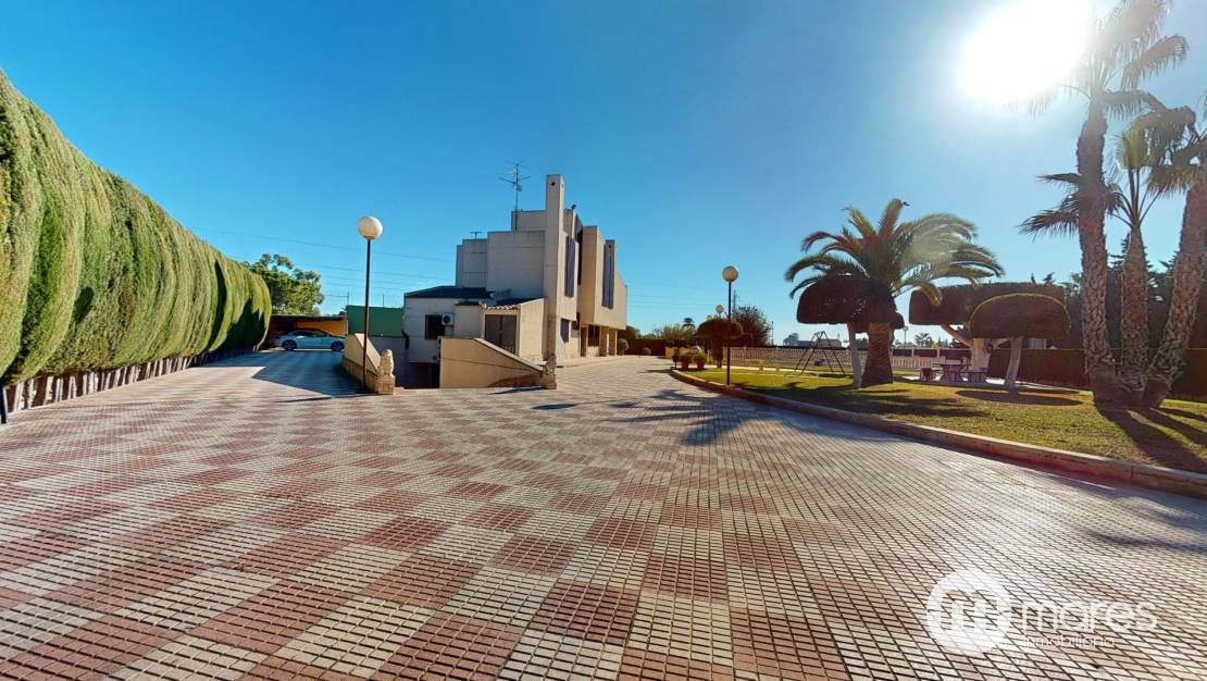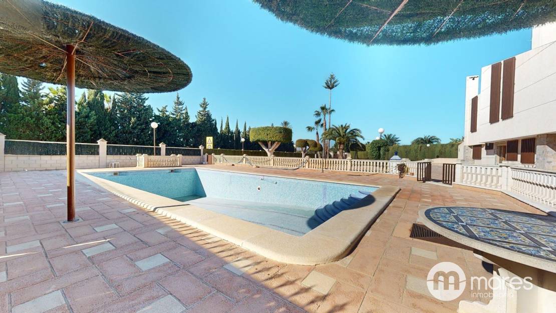 We present this impressive villa where the plot is entirely paved except for the pool and lawn spaces. It has shade for cars, a small fronton and a storage shed, to store bicycles, tools and implements for garden care. It has a basement, ground floor, first floor, boardwalk and terrace, all of them connected from the inside with a staircase. The ground floor is composed of a gallery, kitchen with dining room, living room with fireplace, living room, a bedroom and a full bathroom. On the first floor there are 5 bedrooms, 4 with two full bathrooms in the hallway, in addition to the master bedroom that measures 45 m2 with an individual full bathroom and a small dressing room. This room has access to a private terrace. The basement, in addition to interior communication, has access from the garden through a ramp and driveway. It is equipped with individual air conditioning and a wood-burning fireplace-barbecue for celebrations, it has a shower with hot and cold water and a TV antenna. The garden consists of about 350m surrounded by cypresses and shady trees. All this just 3 minutes from Elche!!