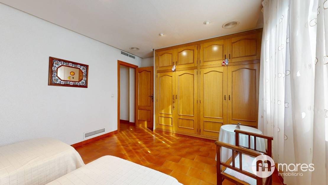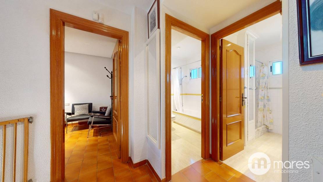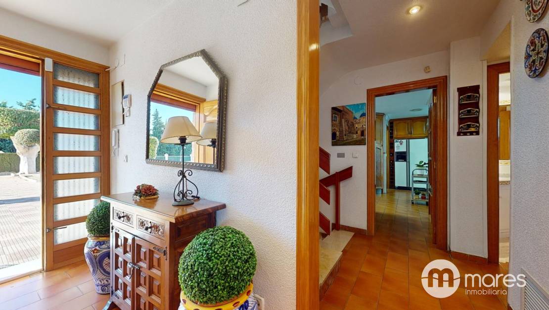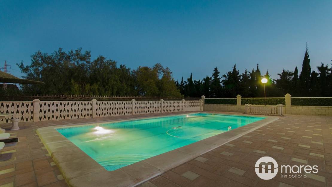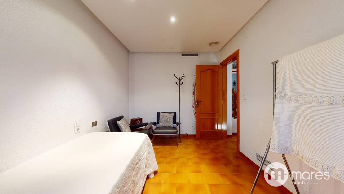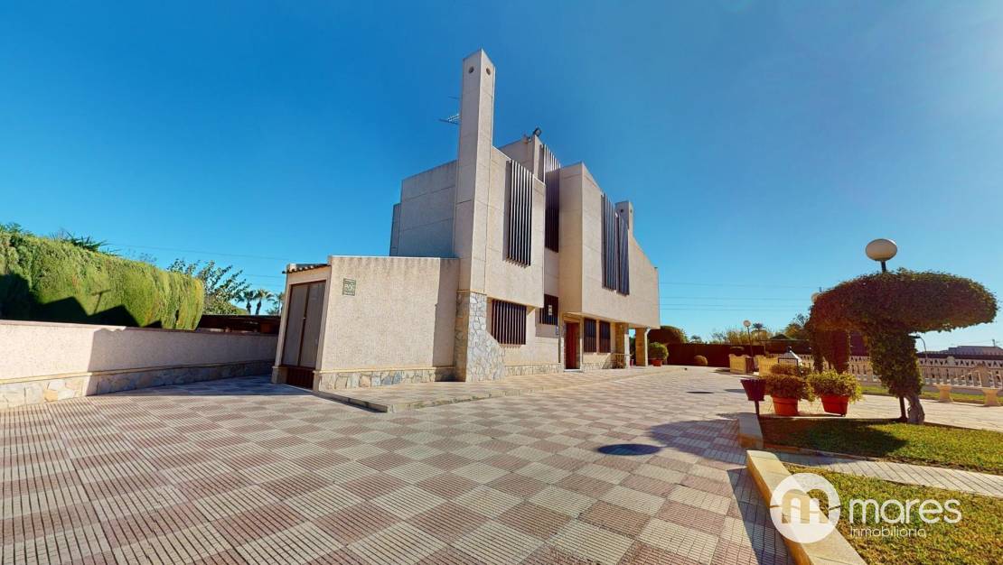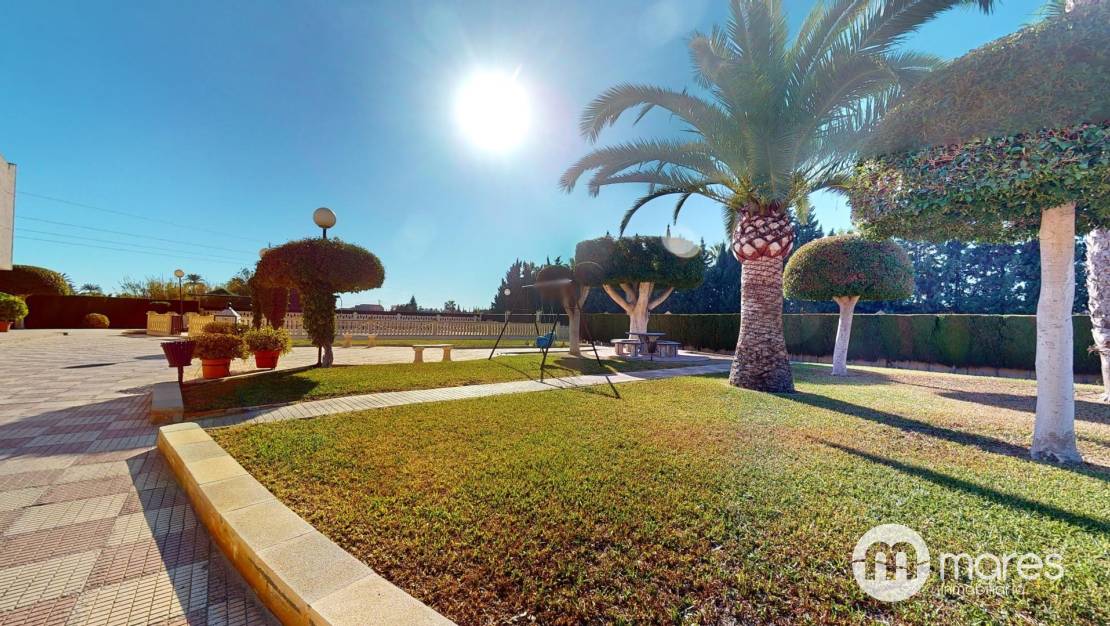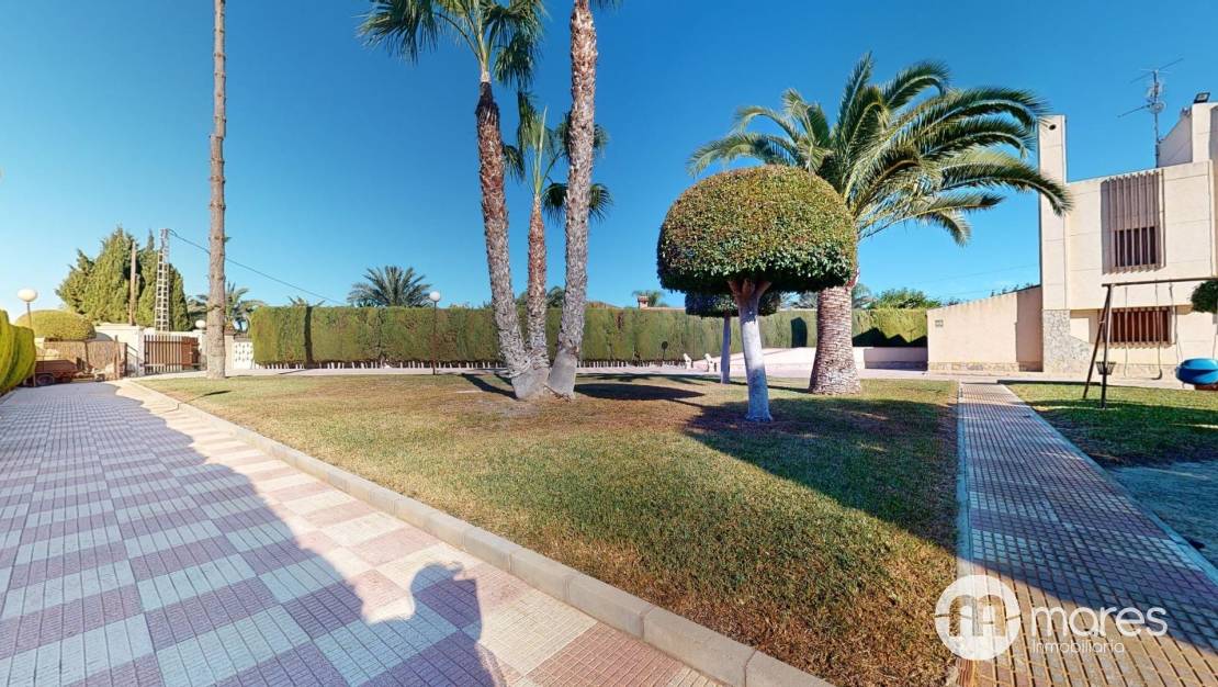 We present this impressive villa where the plot is entirely paved except for the pool and lawn spaces. It has shade for cars, a small fronton and a storage shed, to store bicycles, tools and implements for garden care. It has a basement, ground floor, first floor, boardwalk and terrace, all of them connected from the inside with a staircase. The ground floor is composed of a gallery, kitchen with dining room, living room with fireplace, living room, a bedroom and a full bathroom. On the first floor there are 5 bedrooms, 4 with two full bathrooms in the hallway, in addition to the master bedroom that measures 45 m2 with an individual full bathroom and a small dressing room. This room has access to a private terrace. The basement, in addition to interior communication, has access from the garden through a ramp and driveway. It is equipped with individual air conditioning and a wood-burning fireplace-barbecue for celebrations, it has a shower with hot and cold water and a TV antenna. The garden consists of about 350m surrounded by cypresses and shady trees. All this just 3 minutes from Elche!!
