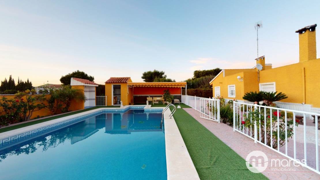 Chalet totalmente reformado, equipado con todas las comodidades que hoy puede tener un chalet de esta categoría, enmarcado en una parcela de 2100m2, tiene dos edificaciones una vivienda principal de 250m2 con 4 dormitorios, un baño de 12m2, un salón comedor de 60m2, una cocina independiente con ofi de 25 m2, todo esto desembarca en una pequeña porchada que se funde con una gran pérgola de 20m que da servicio a una gran explanada con baldosas, la piscina muy importante en esta casa, tiene una ducha y un baño completo que complementa dicha zona, en la parte baja de la piscina tenemos una semi bodega con una gran barbacoa y un horno de hierro, que junto con una segunda pérgola de madera, complementan la zona de ocio de la vivienda.