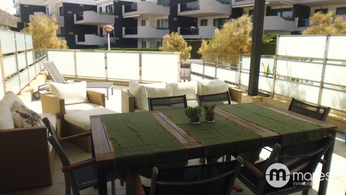 La urbanización en la que se encuentra es un verdadero oasis, con una refrescante piscina comunitaria, hermosos jardines, zonas comunes, y un espacio especialmente dedicado para los más pequeños de la casa. Todo ello en un entorno tranquilo, con la brisa marina y el sonido de las olas de fondo.