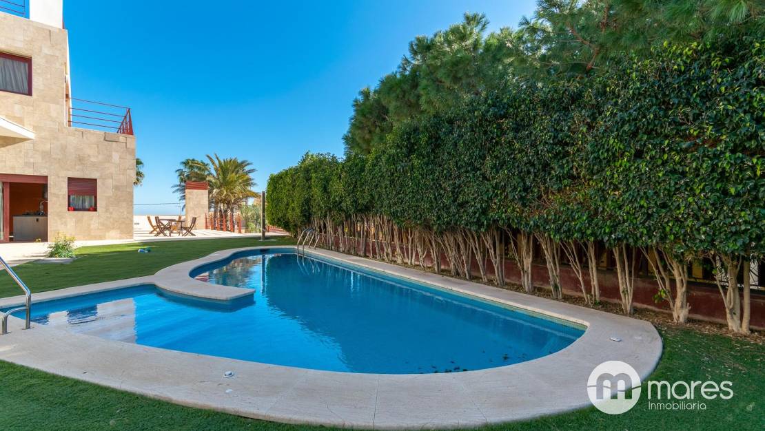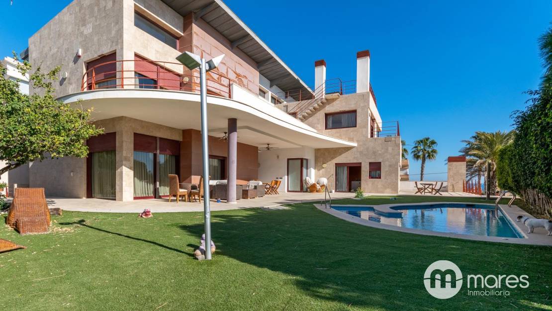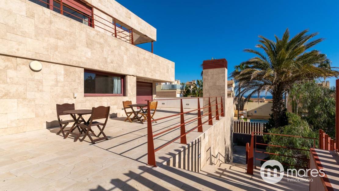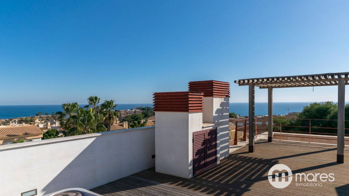 Descubre este impresionante chalet independiente en la exclusiva zona alta de Cabo Huertas, Alicante. Con una superficie construida de 1.303 m², esta propiedad se distribuye en tres plantas, ofreciendo un estilo de vida inigualable. La planta principal cuenta con una cocina de 45 m² con office y chimenea, además de un salón comedor de doble altura de 92 m² que invita a disfrutar de momentos inolvidables. El dormitorio principal, un verdadero refugio de 89 m², incluye un lujoso baño doble y dos vestidores.