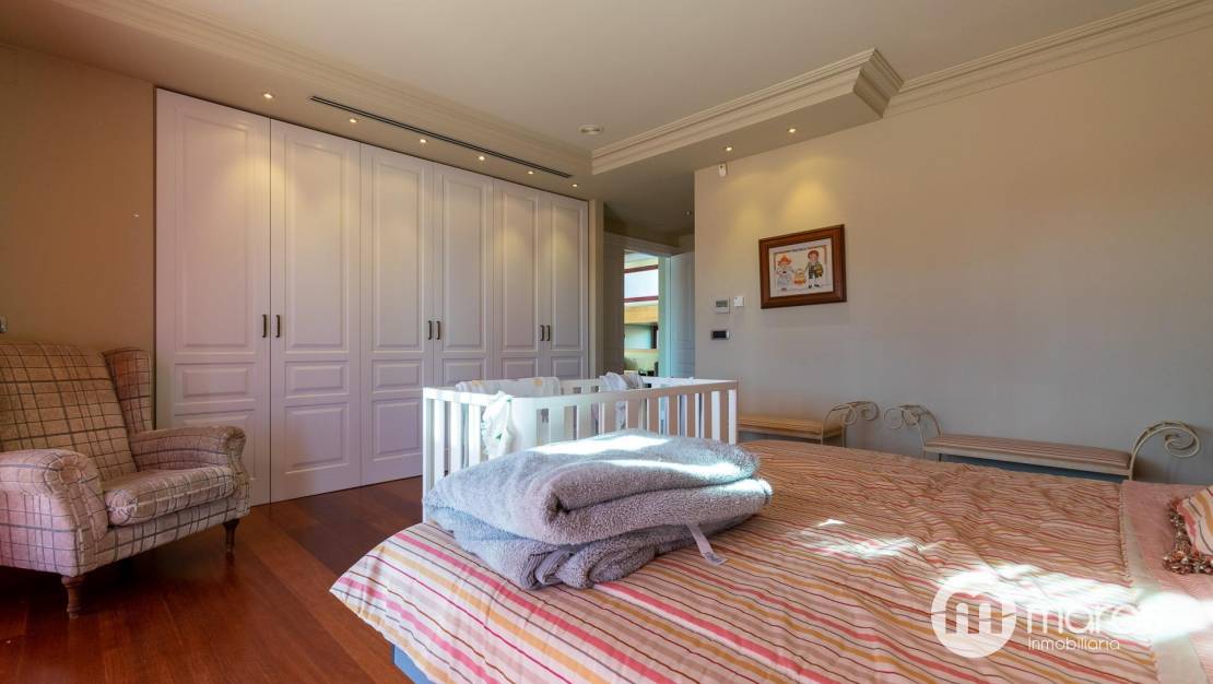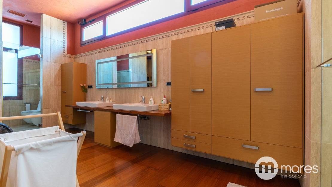En la segunda planta, se encuentran tres dormitorios tipo suite, cada uno con baño privado y terrazas que ofrecen espectaculares vistas al mar. Además, hay una biblioteca y un cuarto de limpieza para mayor comodidad. La planta baja es perfecta para el entretenimiento, con una gran bodega de 66 m², un salón comedor con cocina equipada y horno de leña, así como múltiples aseos y espacios auxiliares.