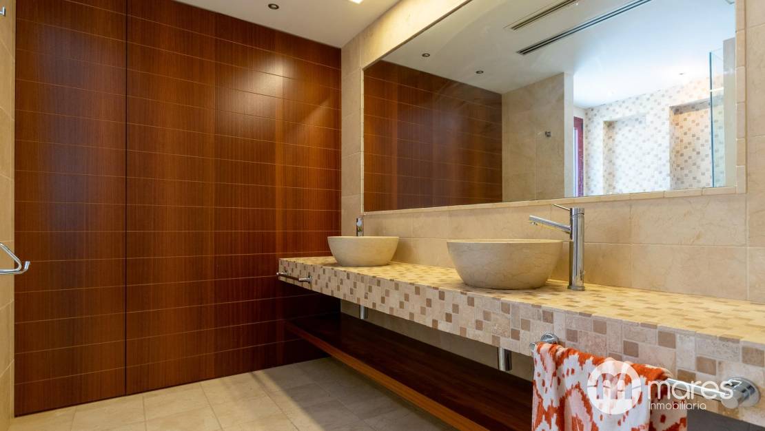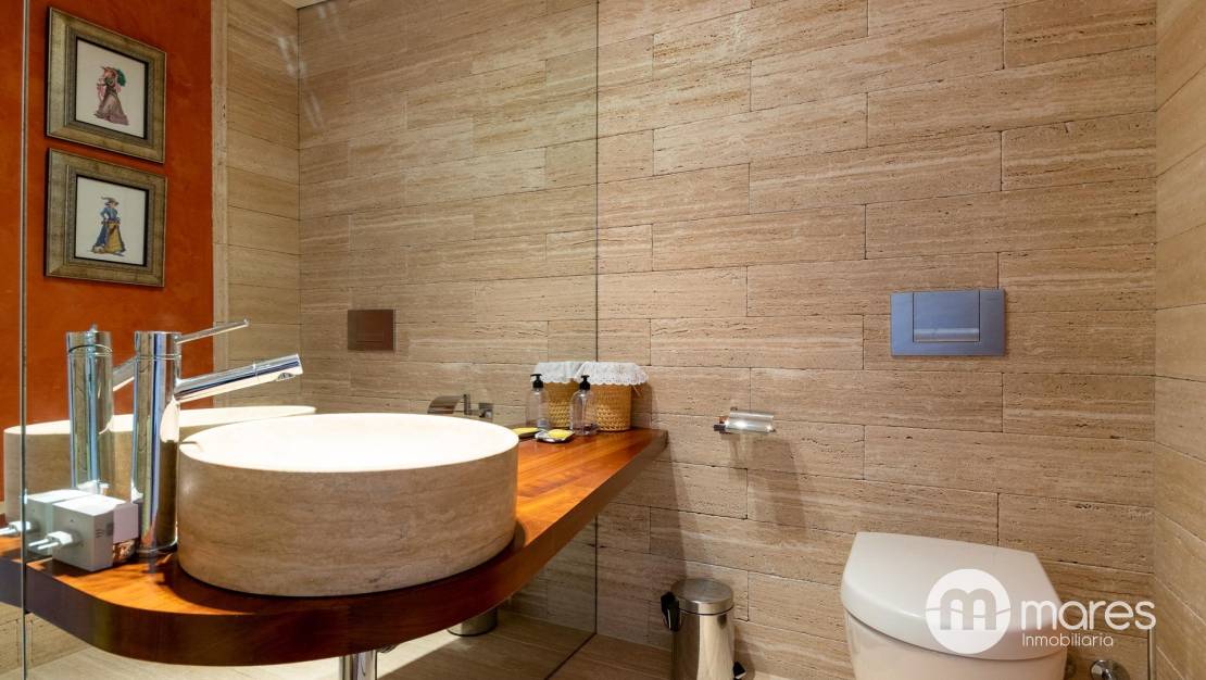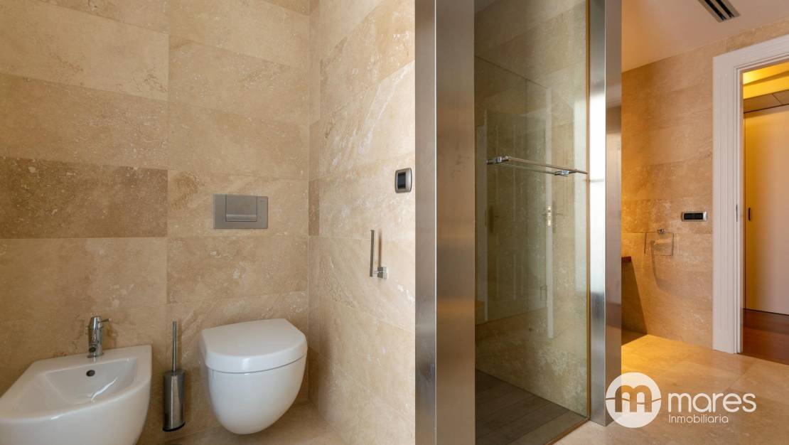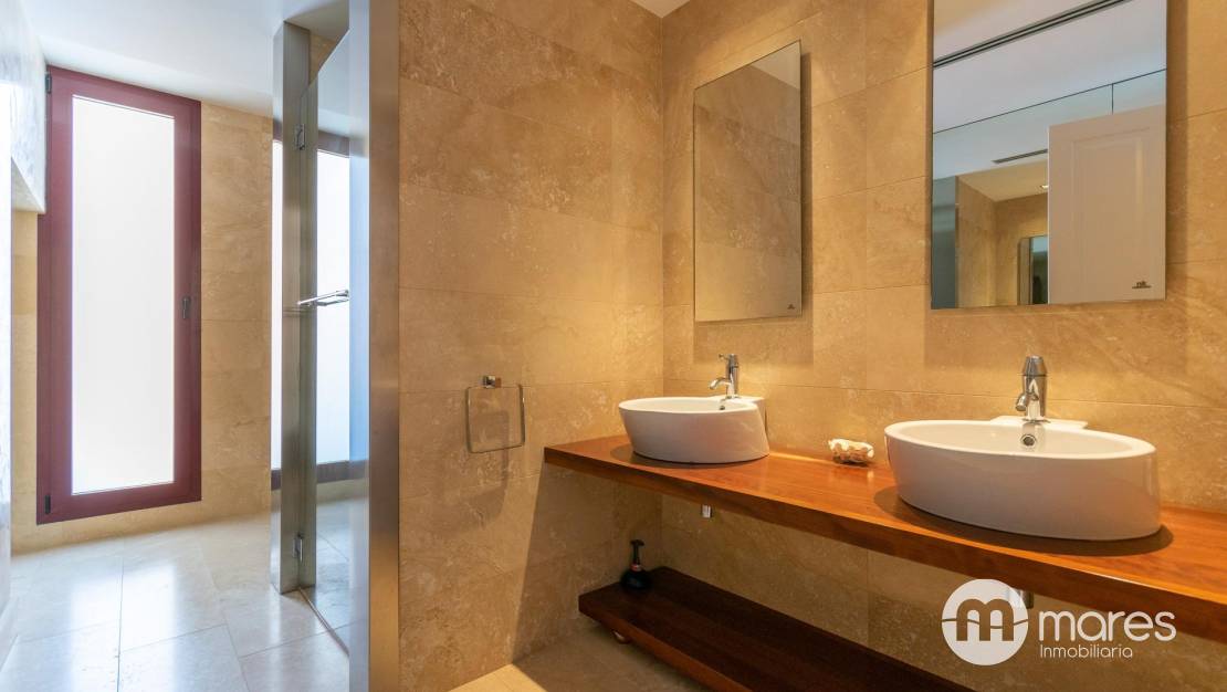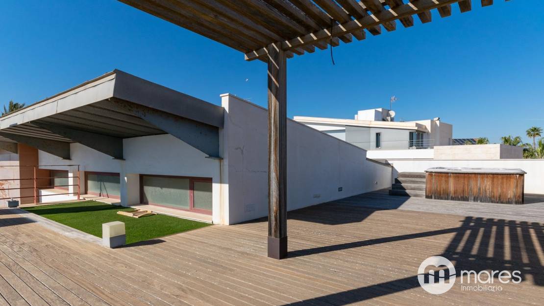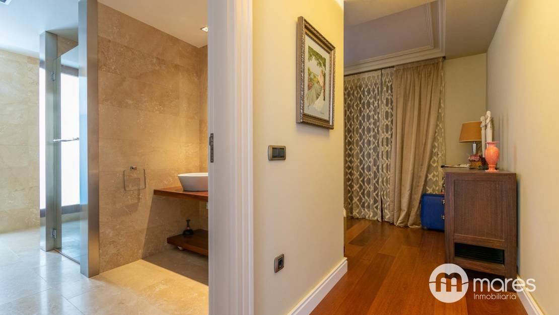 El exterior es un verdadero oasis con varias terrazas, barbacoa y una piscina con chorros de masaje. La terraza solárium en la cubierta de 122 m² cuenta con un spa que promete momentos de relajación. La propiedad está decorada con un elegante revestimiento en mármol travertino y cuenta con suelos interiores de mármol y madera que aportan calidez.