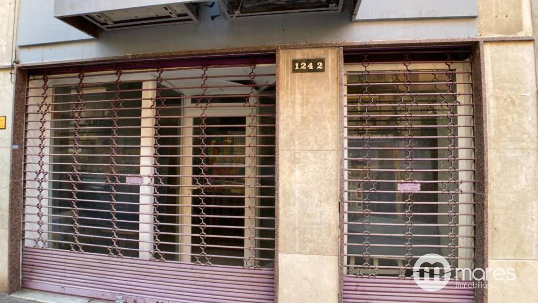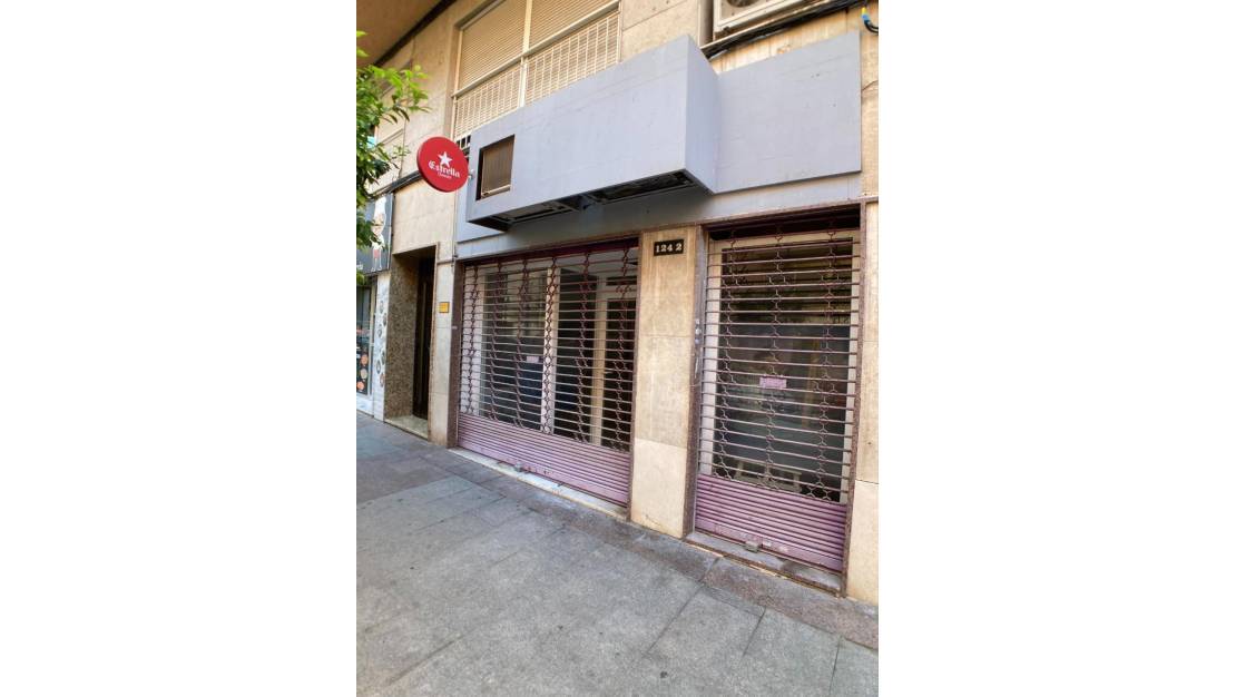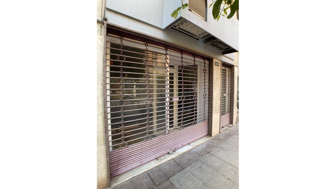 De fachada tiene 5 metros además de cristalera y escaparate dividido en dos partes con persianas metalicas vistas. Tiene aseo y en planta se divide en acceso principal a local y zona de almacenaje al final. La altura del techo en las dos zonas del local es considerable, llegando a los 3 metros de altura.