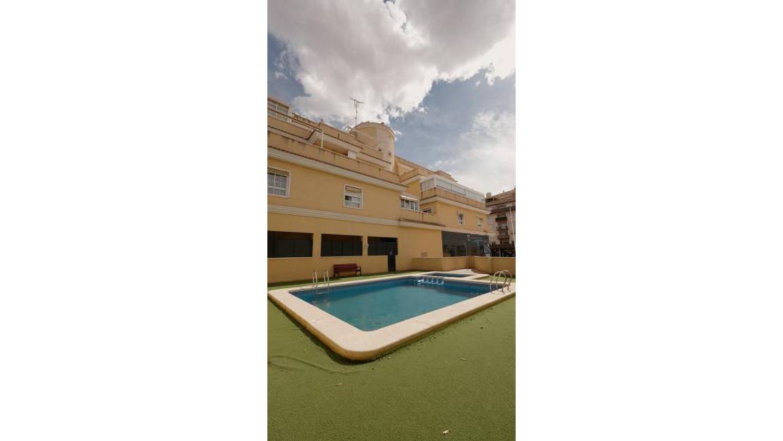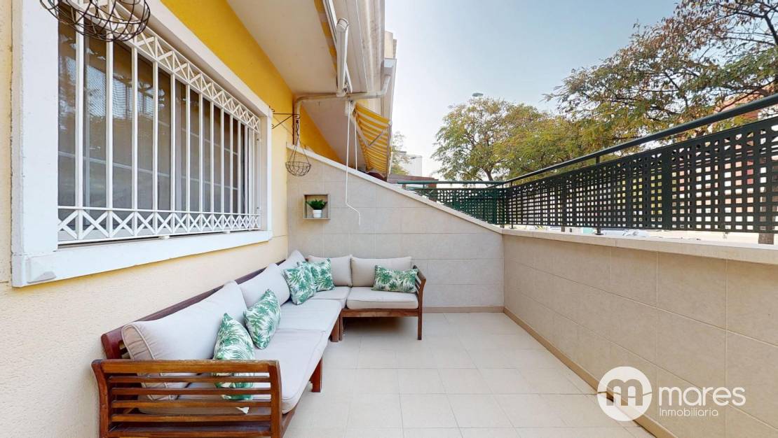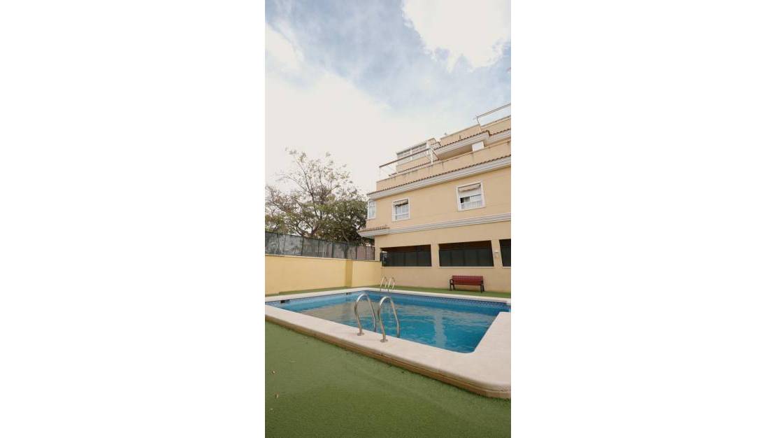 Descubre este espectacular bungalow ubicado en la codiciada zona junto al campo de fútbol de Elche, dentro de una exclusiva urbanización que ofrece piscina comunitaria para disfrutar del sol.