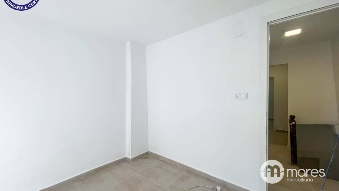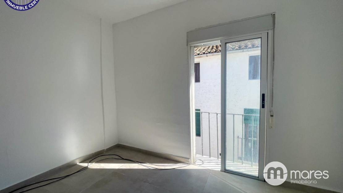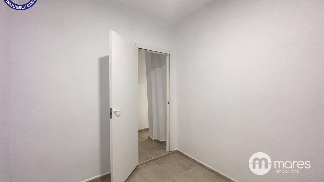 Subimos a la primera planta, donde la calma toma forma en una luminosa habitación principal con balcón a la fachada. Aquí despertarás con la luz del sol y las vistas a la vida del casco antiguo. En esta planta también encontramos un baño moderno con plato de ducha, y dos espacios que hoy son almacenes, pero mañana pueden convertirse en vestidor, despacho o habitación extra.