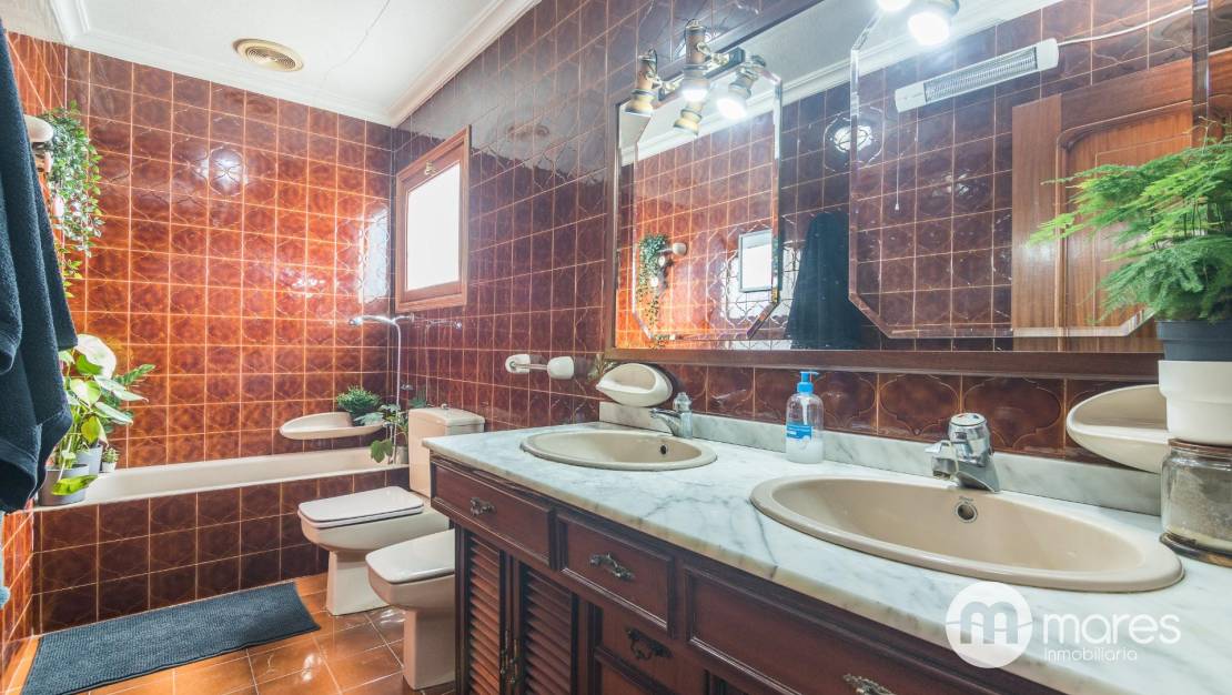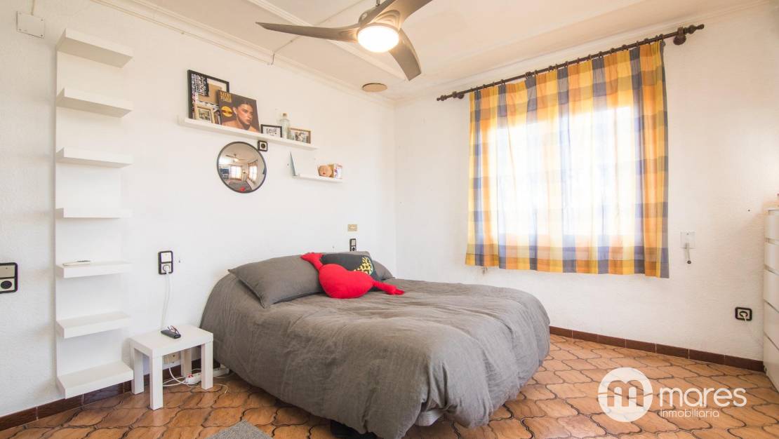 En planta alta están los dormitorios, todos dobles. La habitación principal cuenta con baño en suite, vestidor, y con salida a una gran terraza con vistas panorámicas a Elche y los alrededores.