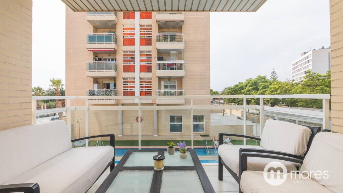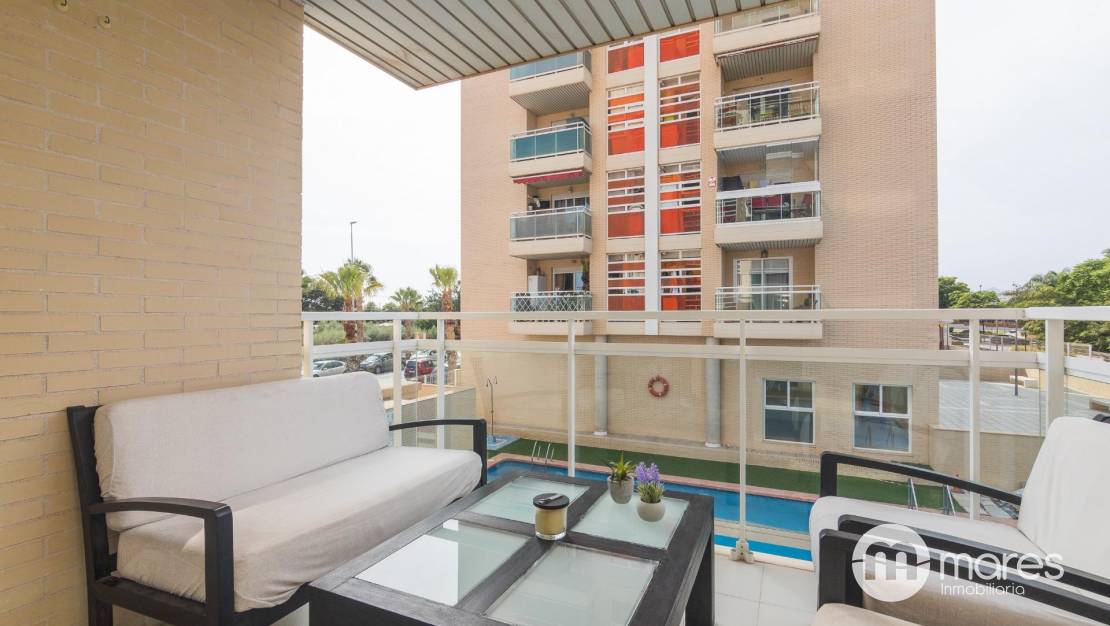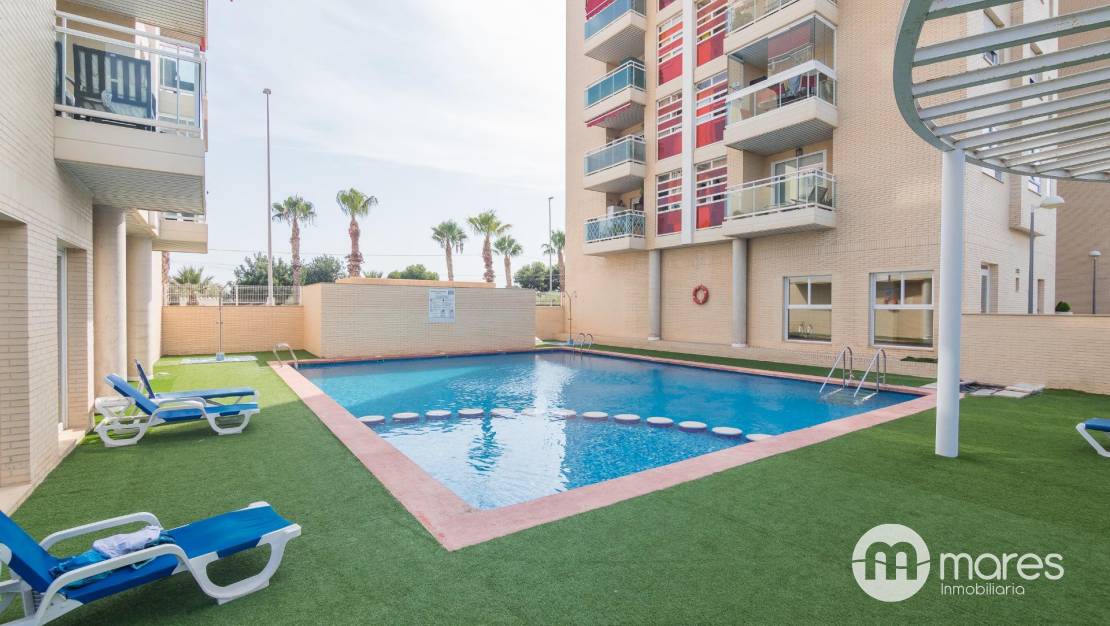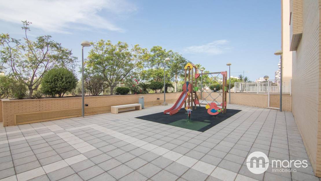 Luminoso piso con garaje, en una cuidada urbanización residencial cerrada, con piscina comunitaria, zonas infantiles y espacios ajardinados, esta vivienda ofrece todo lo necesario para disfrutar de una vida cómoda y tranquila junto al mar.