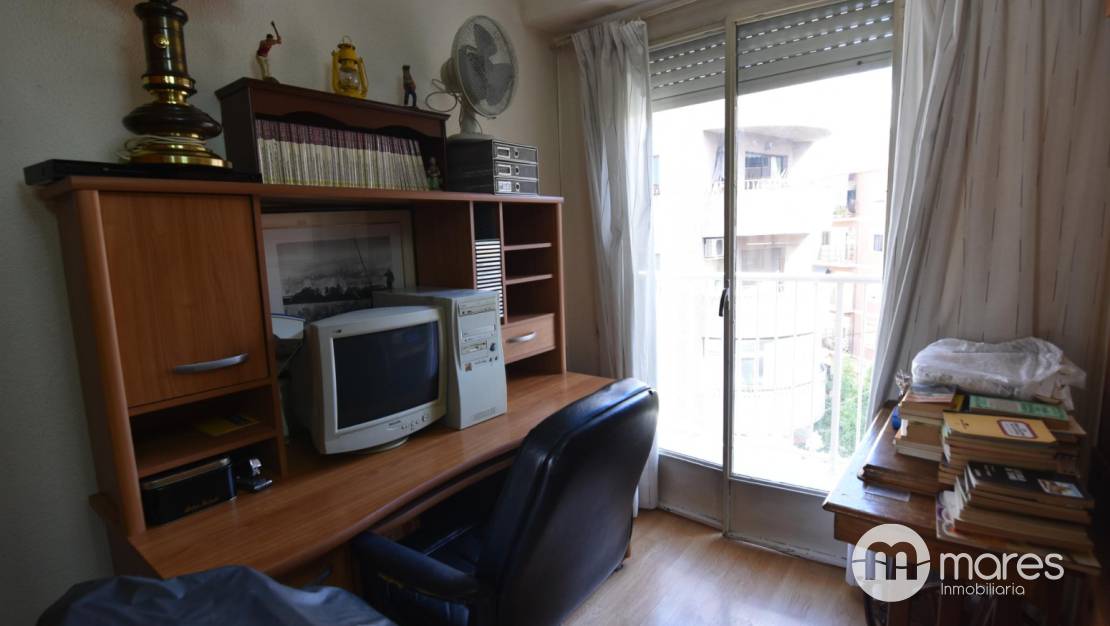 Tiene cocina con lavadero y ventilación a patio interior, salon comedor con amplias vistas, iluminación además de despejada, que circunda dos balcones, uno pequeño donde esta el aparato de aire acondicionado, y otro balcón rodeando a las 3 habitaciones (actualmente dos dormitorios y un despacho).