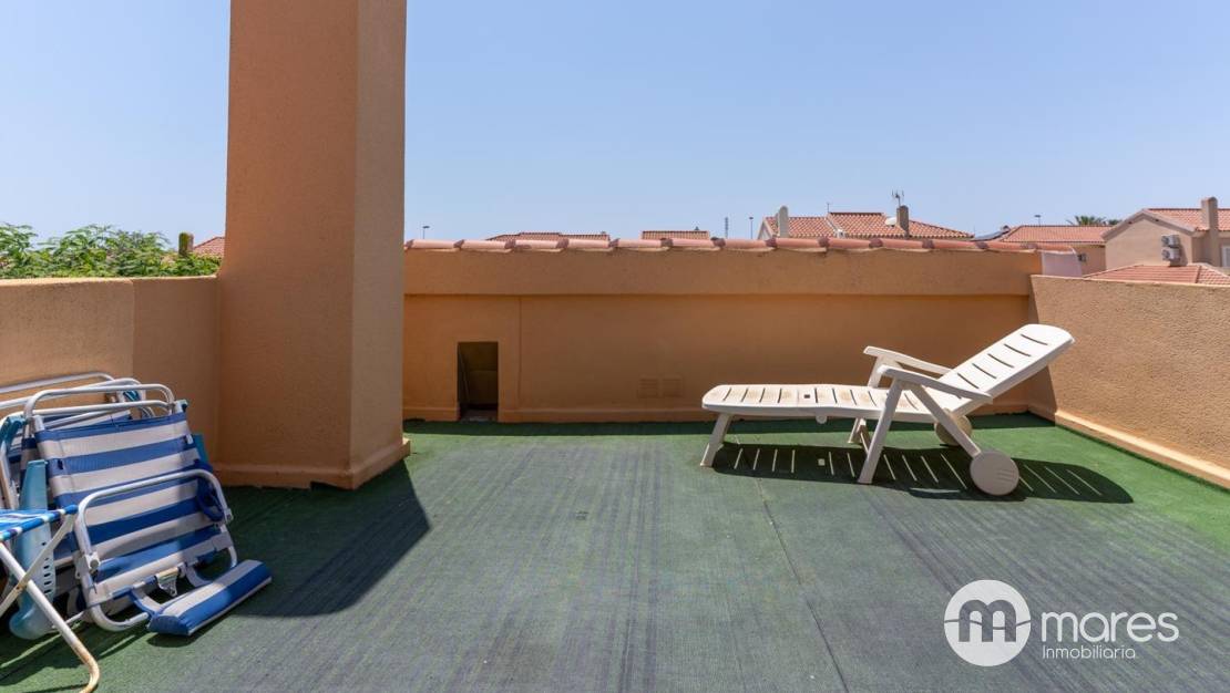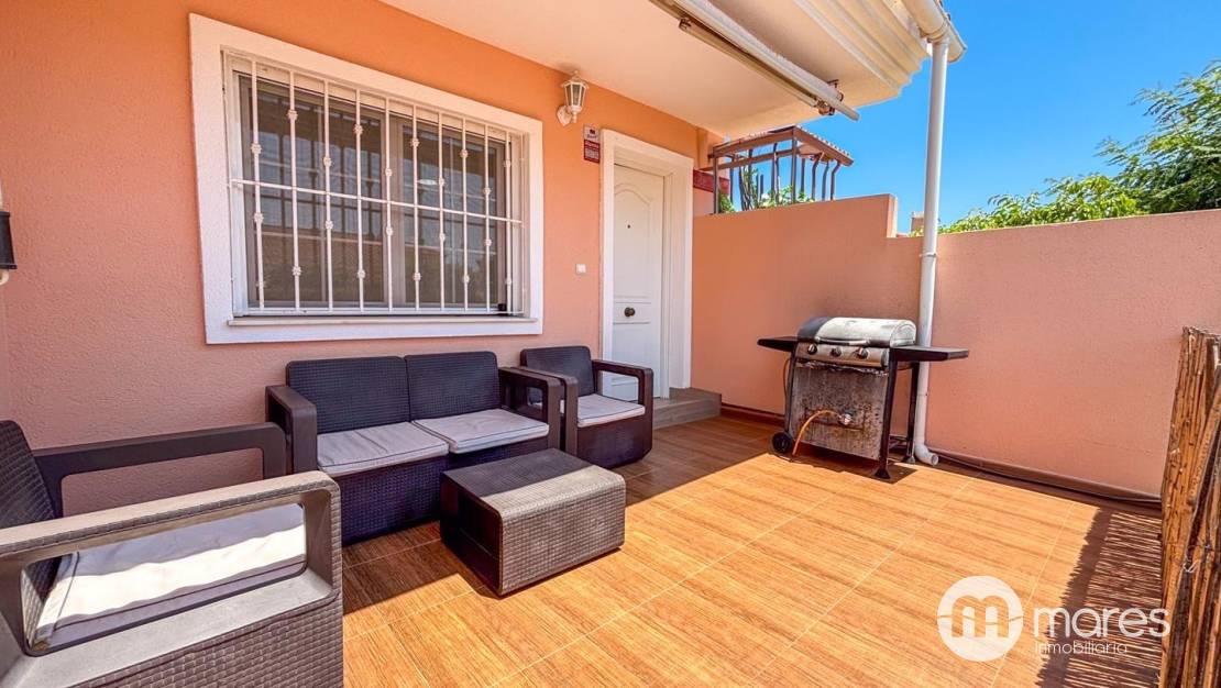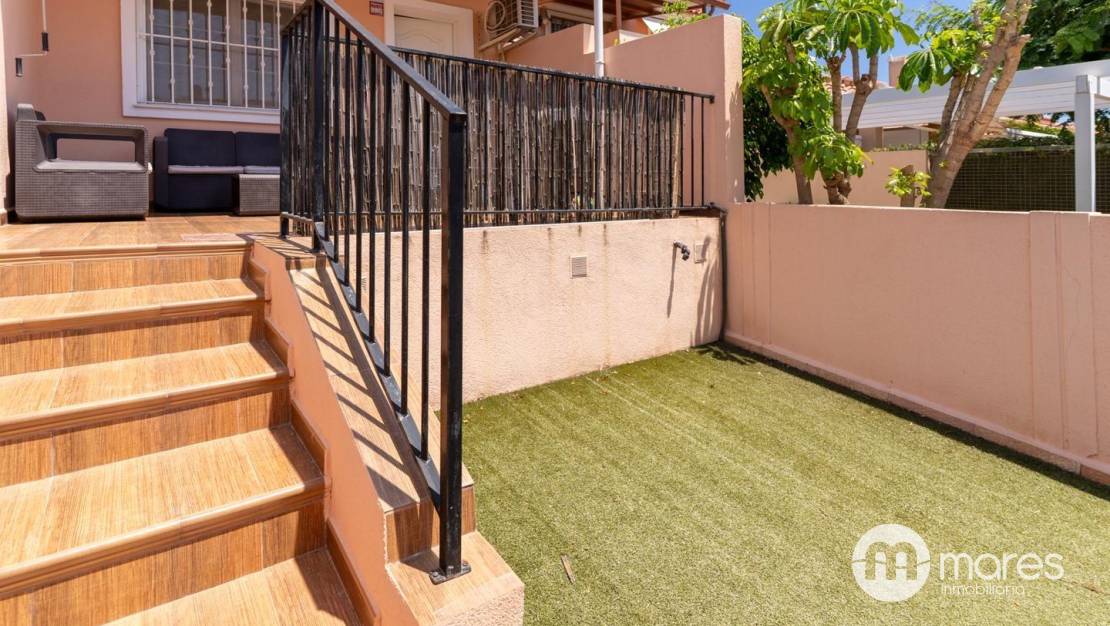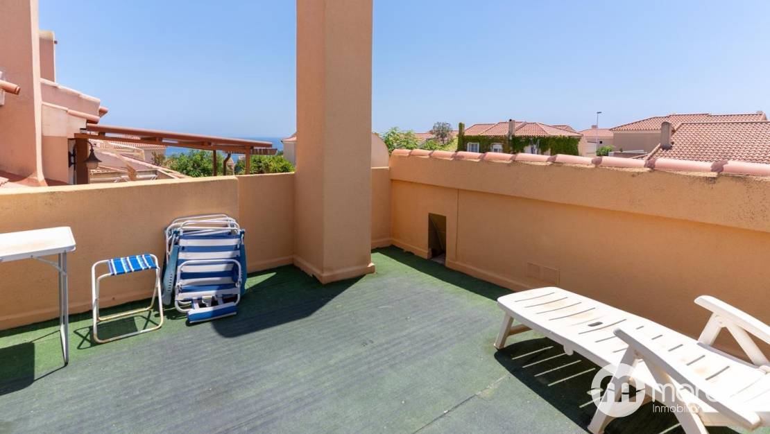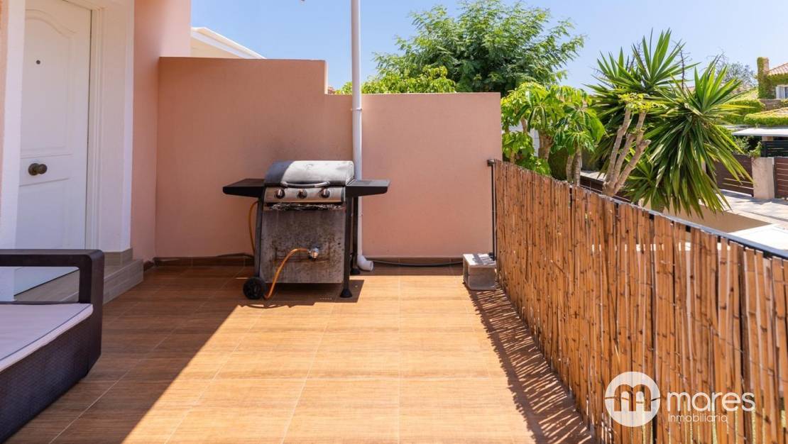 Uno de los grandes atractivos de este bungalow son sus dos terrazas privadas: una en la planta principal, de doble altura, ideal para disfrutar de comidas al aire libre o momentos de relax; y otra en la planta superior, accesible desde el dormitorio principal, que ofrece preciosas vistas al mar, convirtiéndose en un rincón perfecto para desconectar y disfrutar del entorno.