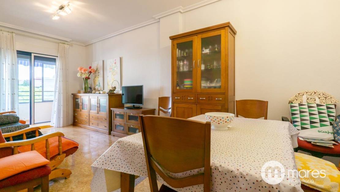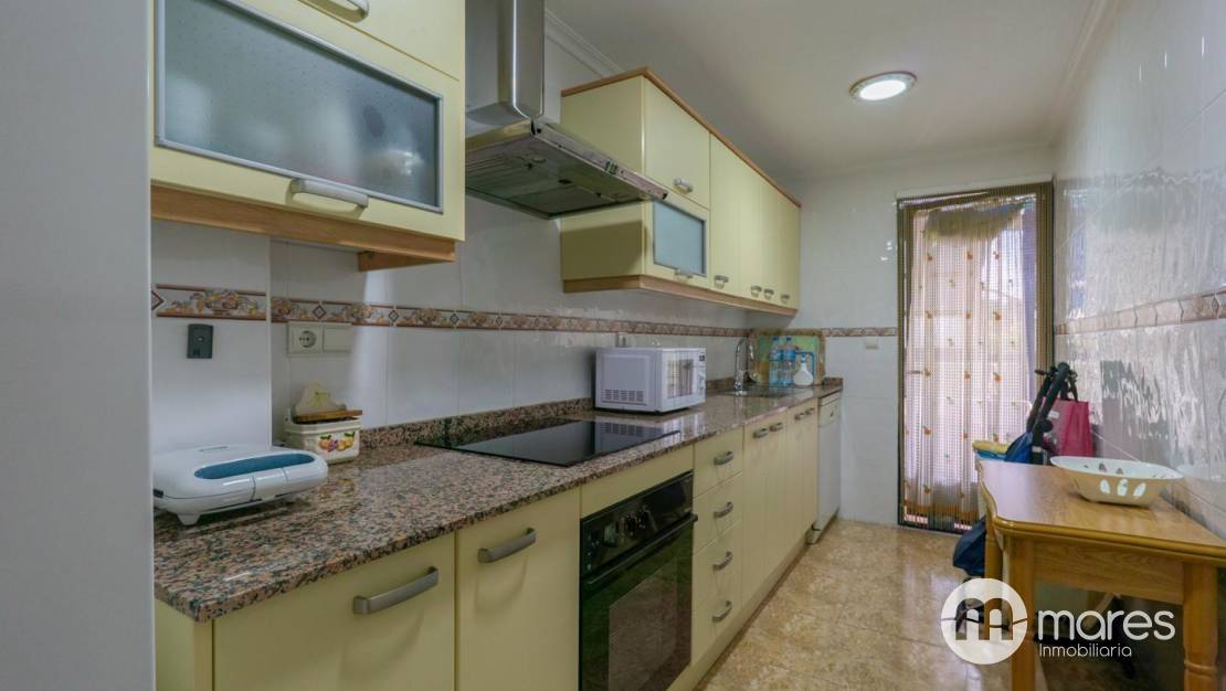 Dispone de tres dormitorios y dos baños, uno de ellos en suite en el dormitorio principal. La zona de día se compone de un amplio salón comedor y una cocina independiente, ambos con salida directa a una agradable terraza con vistas muy abiertas y despejadas a una zona verde.