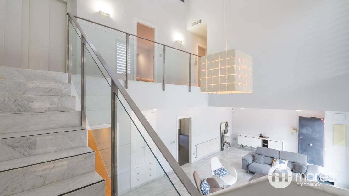 Consta de UNA VIVIENDA DE 350M2 APROX. DE ARQUITECTURA ELEGANTE Y DISTINGUIDA CON TECHOS ALTOS Y ABIERTOS A LA PLANTA MAS ALTA . Su planta baja distribuye el salón con grandes ventanales que filtran luz natural y nos dejan contemplar desde el interior un EXTERIOR LLAMATIVO CON PISCINA , cocina con diseño muy amplia e independiente, y un baño. En la planta mas altas encontramos 3 dormitorios, uno de ellos con vestidor y baño en suite.