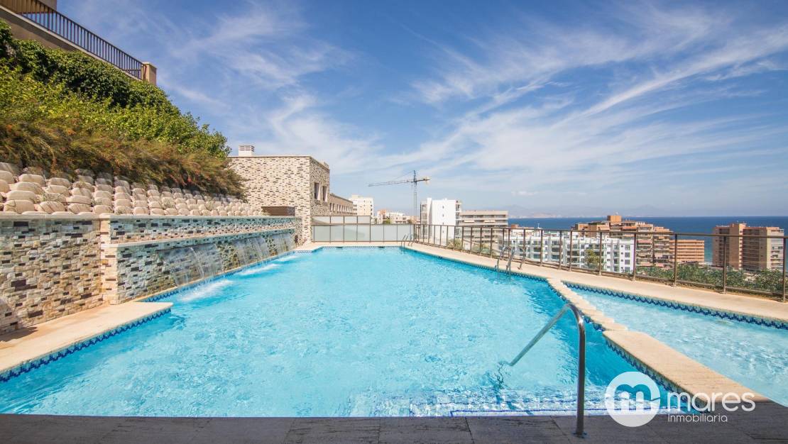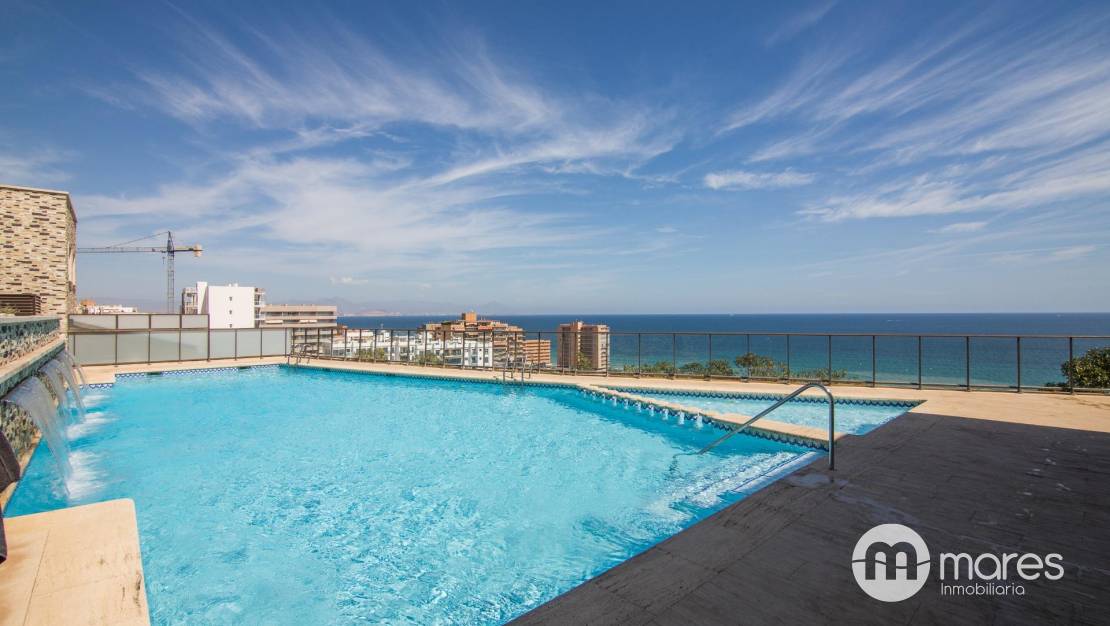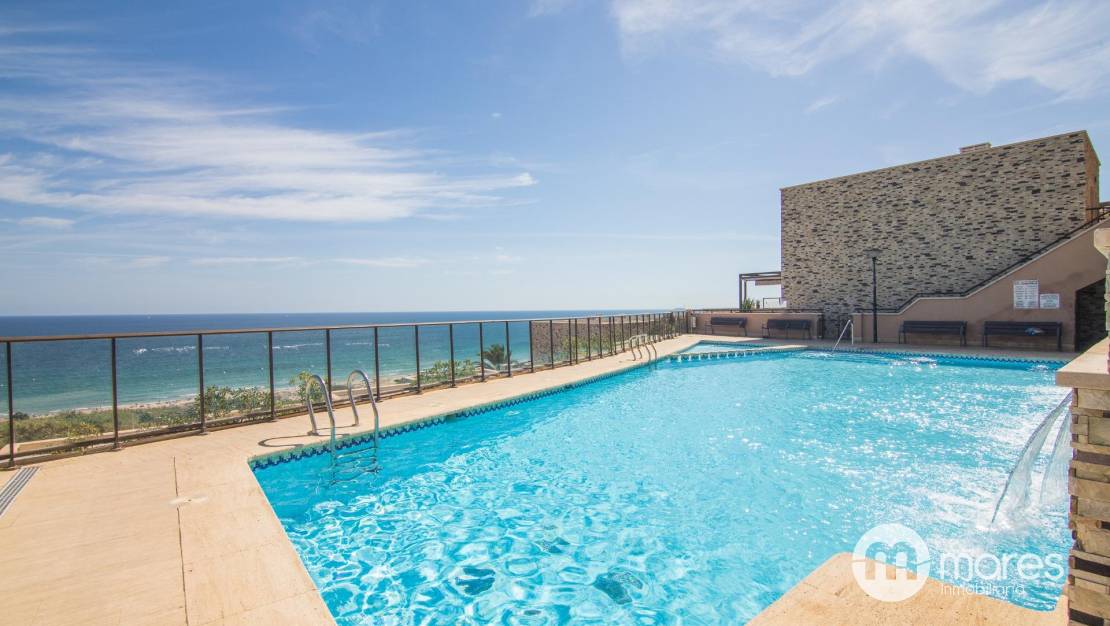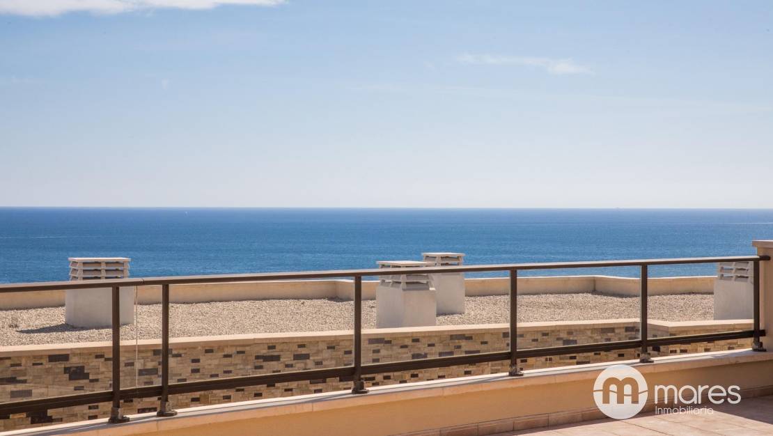 Enjoy this bungalow with incredible sea views and a 62 m² terrace. It features 3 bedrooms, 2 bathrooms and a guest toilet, an open-plan fully equipped kitchen, utility room, sea views from two of the bedrooms, fitted wardrobes, centralized air conditioning throughout the property, natural gas installation ready for heating, ceramic flooring, aluminum/climalit exterior carpentry, a communal swimming pool, and an underground parking space included.