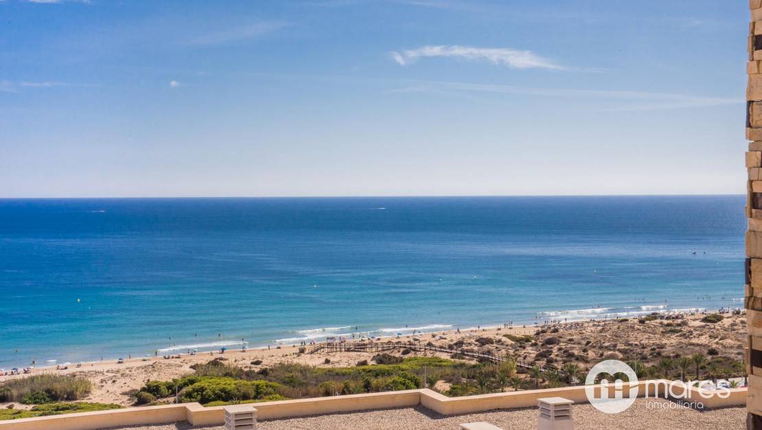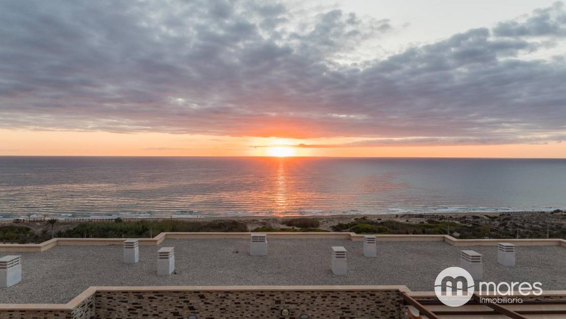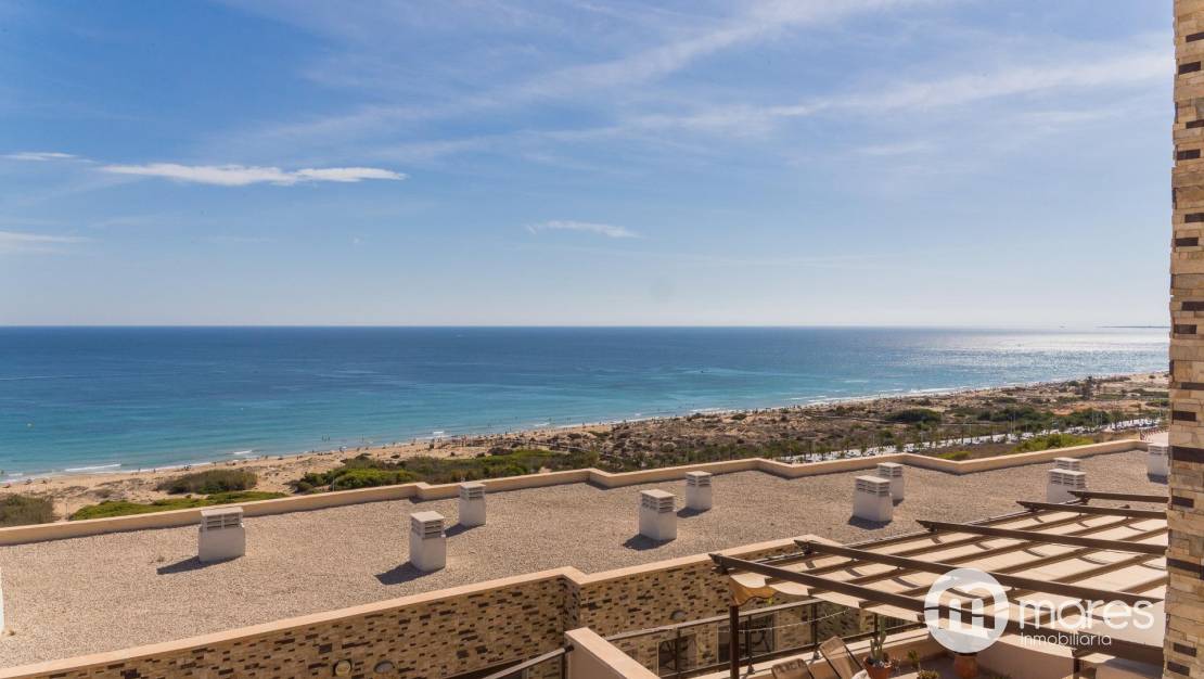 Disfruta de este Bungalow con unas vistas increíbles al mar y con una terraza de 62m2. 3 dormitorios, 2 baños y un aseo, cocina americana y equipada, galería, vistas al mar desde dos dormitorios, armarios empotrados, aire acondicionado centralizado por toda la vivienda, instalación de gas natural para poner calefacción, suelo de cerámico, carpintería exterior de aluminio / climalit, piscina comunitaria y plaza de garaje en sótano incluida.