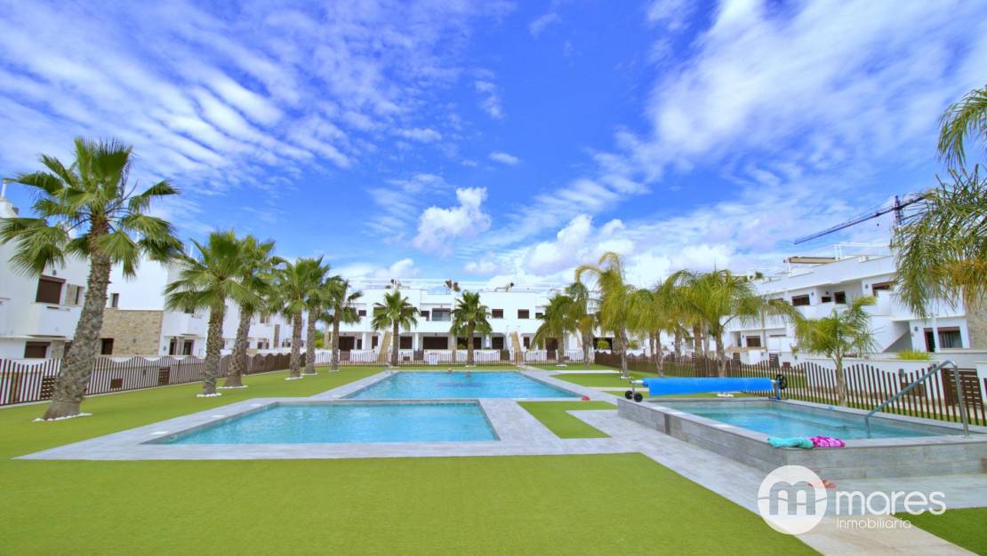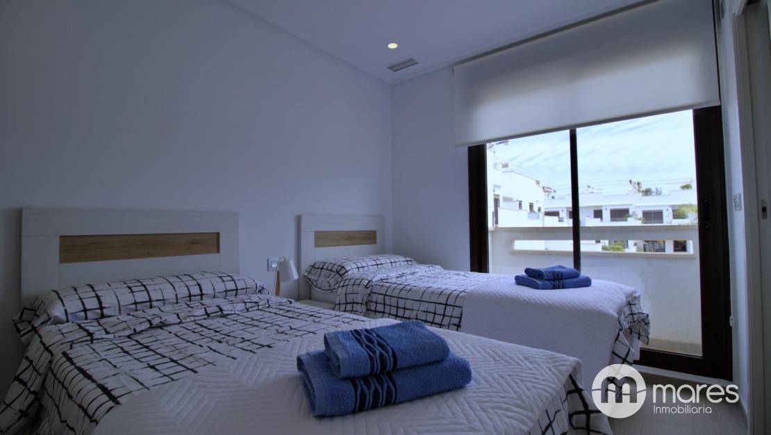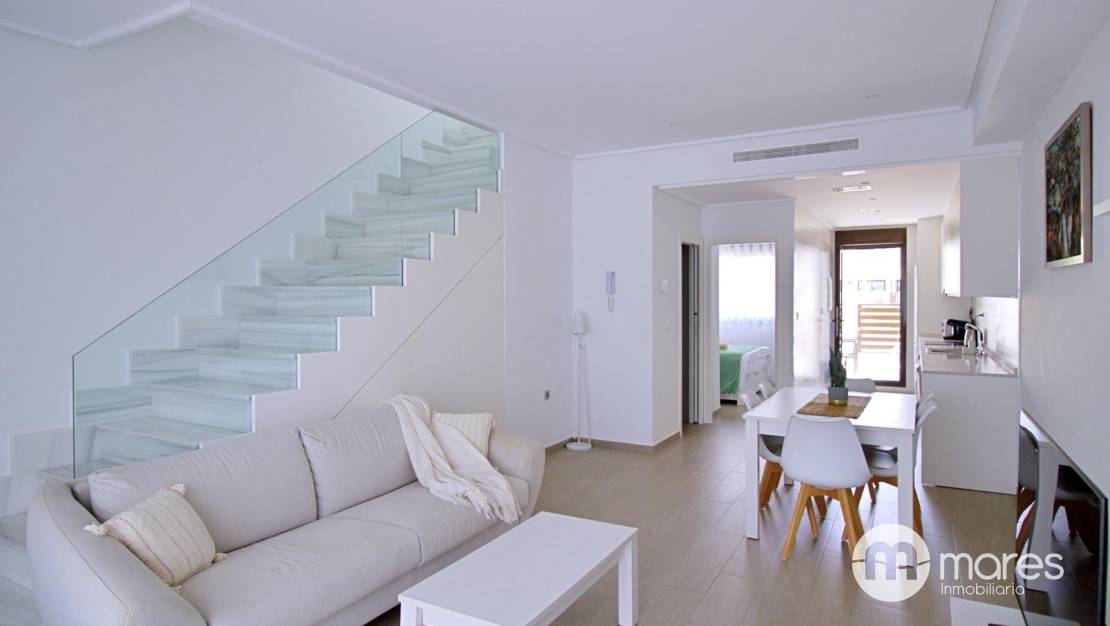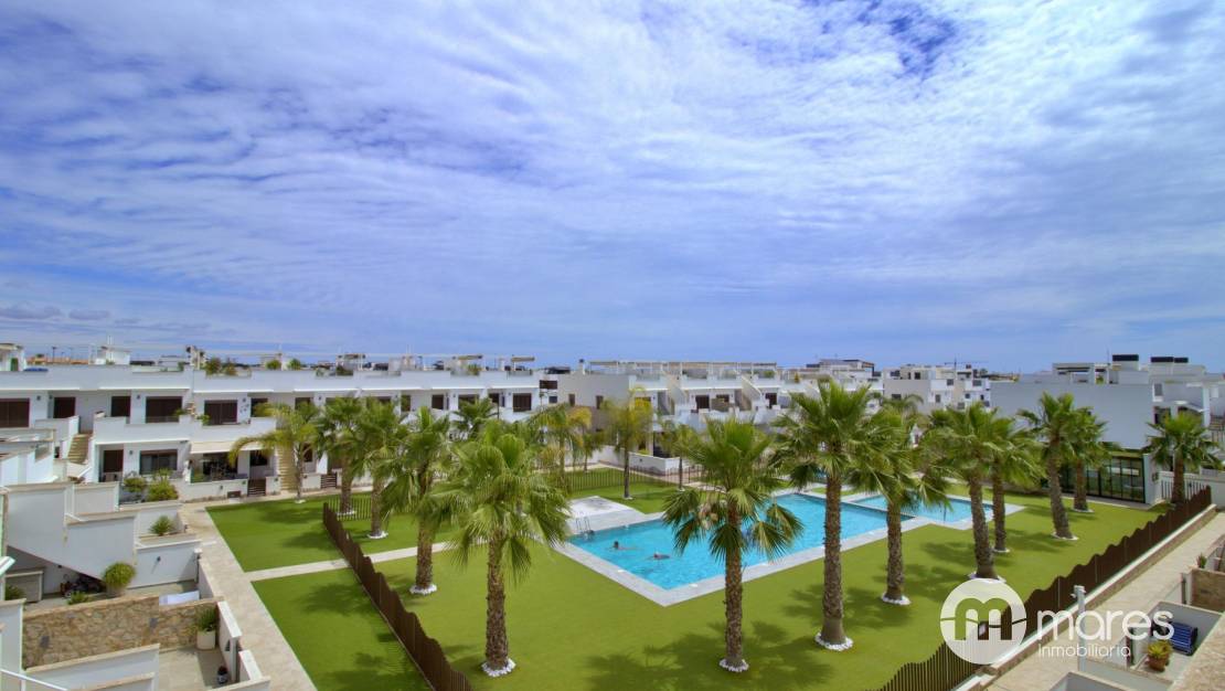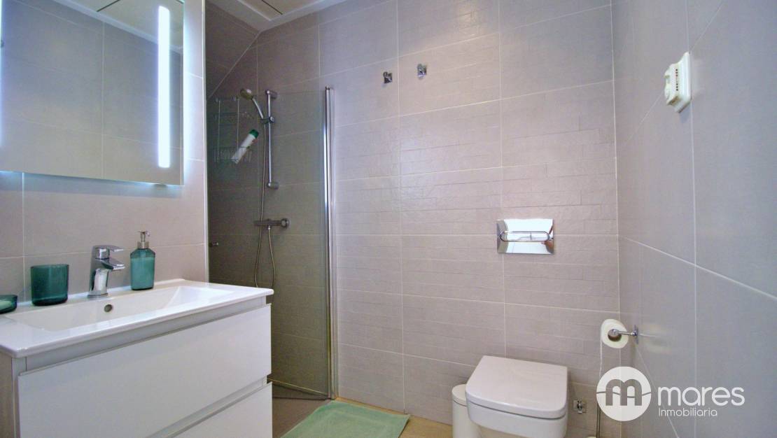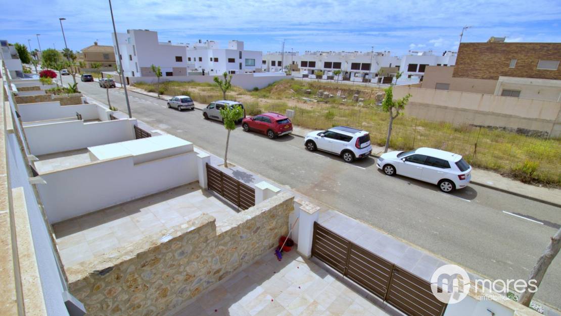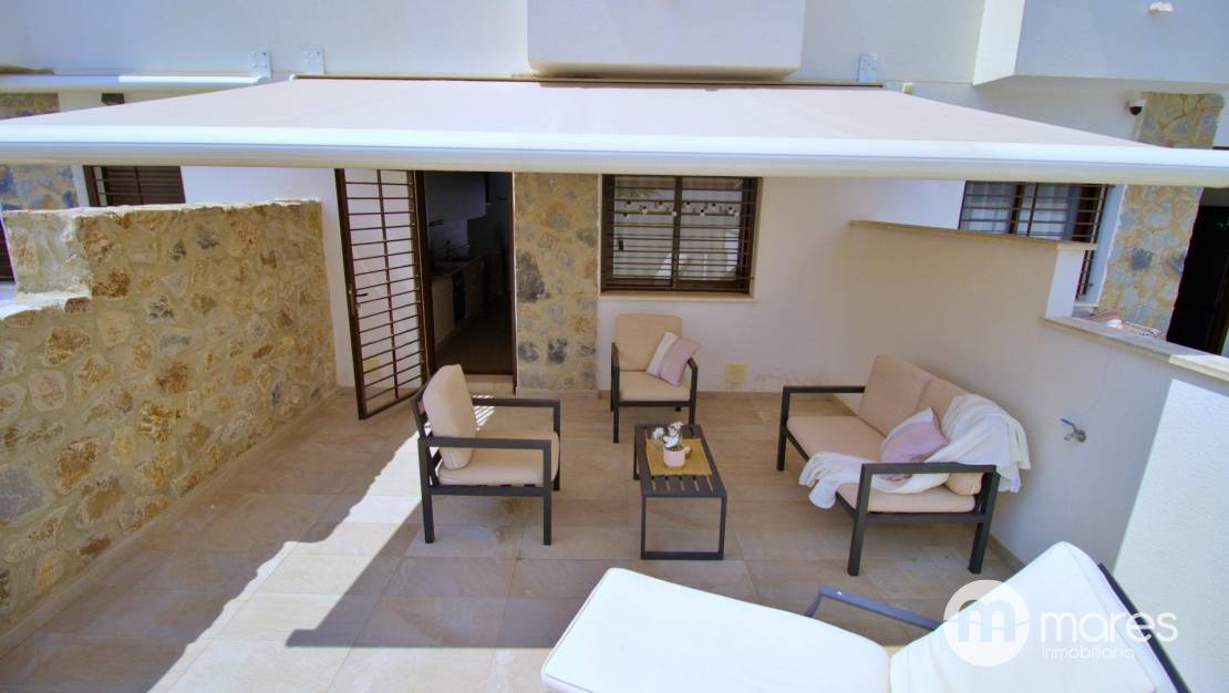 La zona exterior es uno de sus grandes atractivos: una amplia terraza trasera con acceso directo a la fantástica área comunitaria. En la planta superior, el dormitorio principal dispone de un elegante vestidor, baño en suite y acceso a un balcón que conecta con una gran terraza solárium equipada con pérgola y espectaculares vistas .