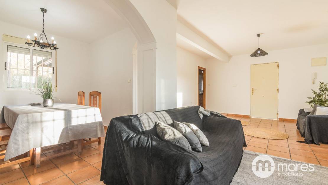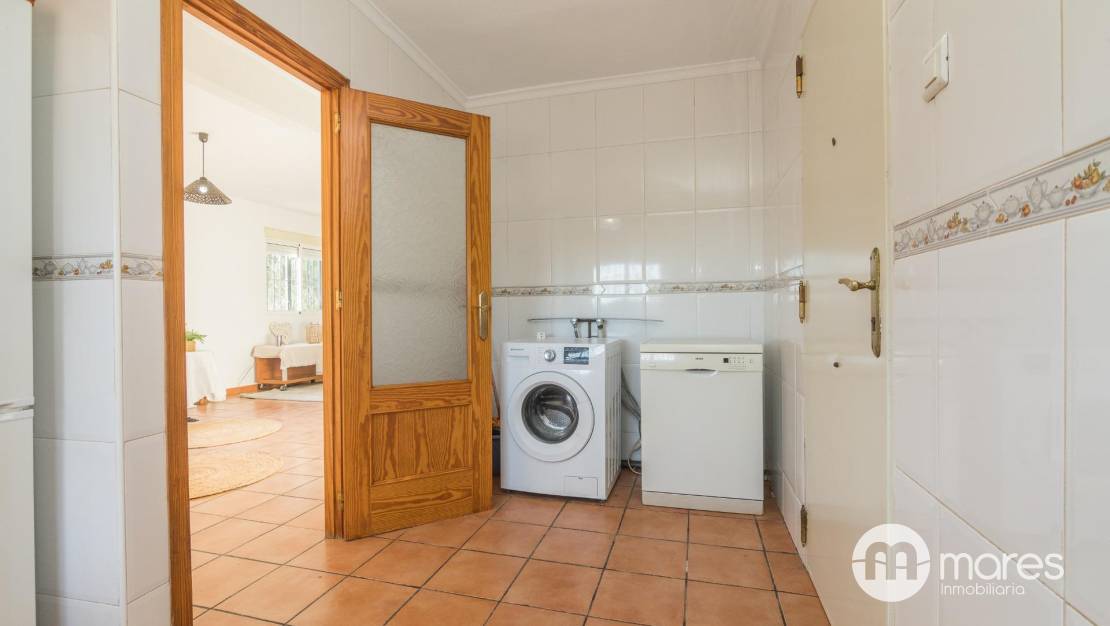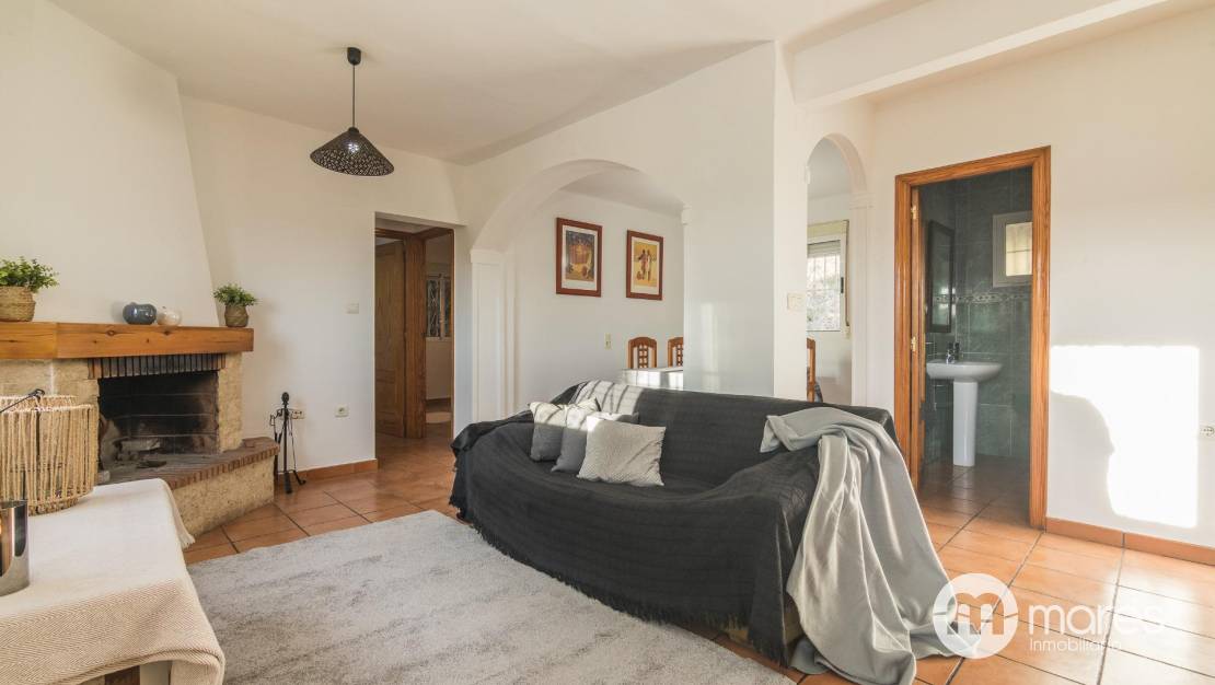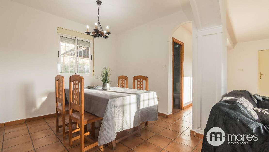 El salón cuenta con una chimenea que aporta calidez, un ambiente acogedor, abriéndose al comedor mediante arcos, que aportan fluidez visual y comodidad para el día a día. La cocina con lavadero tiene salida a la parte trasera de la vivienda, con un porche para usar en reuniones y eventos.