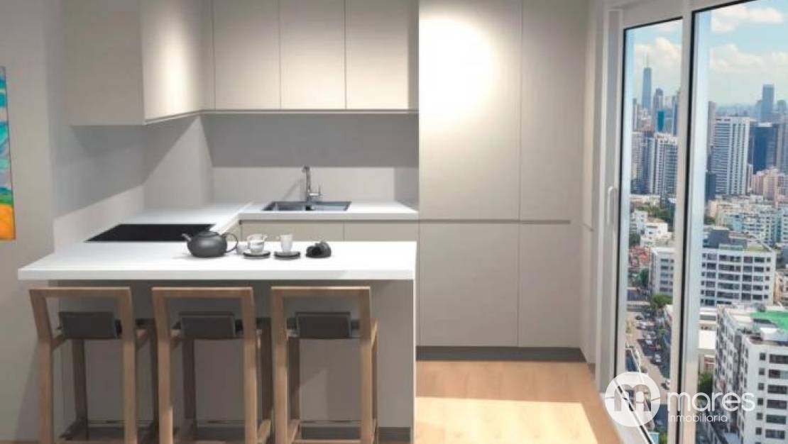 • Cocina de alta gama con muebles altos y bajos, acabado laminado