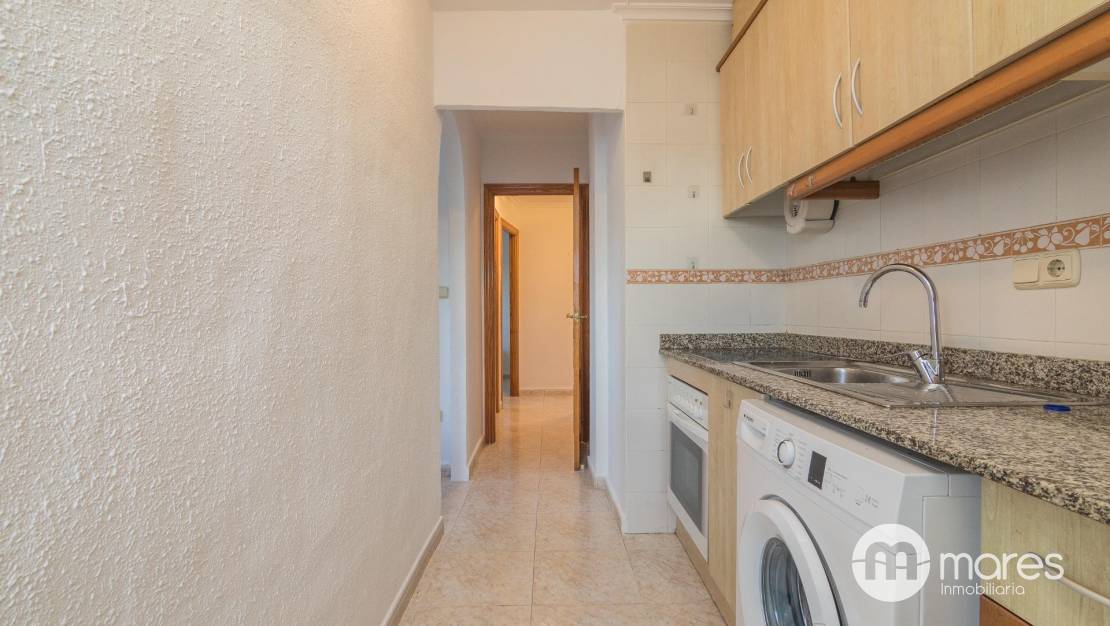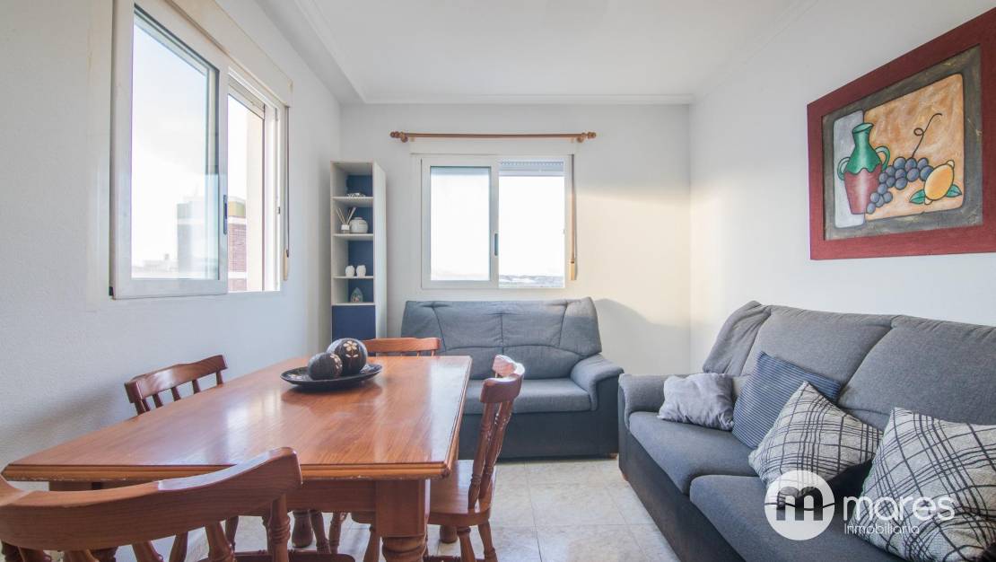 Vivienda en venta en El Altet, frente a la plaza, de dos dormitorios, todo exterior, sin pasillo, un baño, cocina independiente y equipada de 54 metros construidos, sin metros de pasillo desaprovechados, céntrico y cerca de todos los servicios de la zona. A 10 minutos del centro de alicante, a 20 minutos de Elche y a un paso de la playa de El Altet y Los Arenales del Sol.