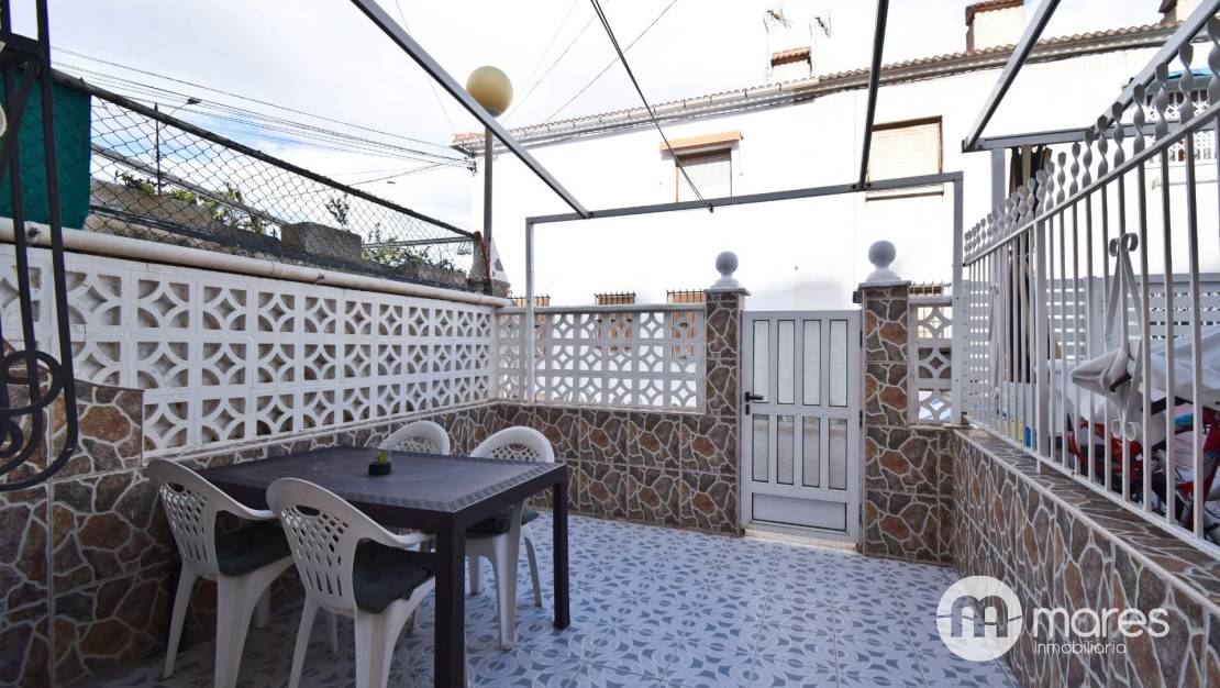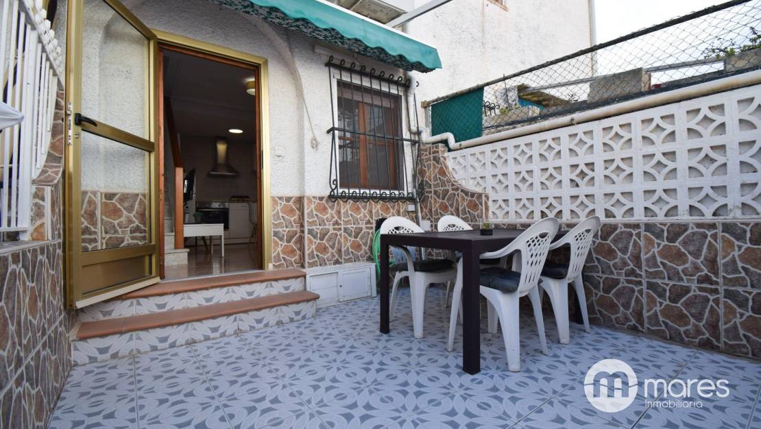 Planta baja: agradable terraza exterior de aprox. 12 m², cocina actualizada, salón-comedor y aseo.