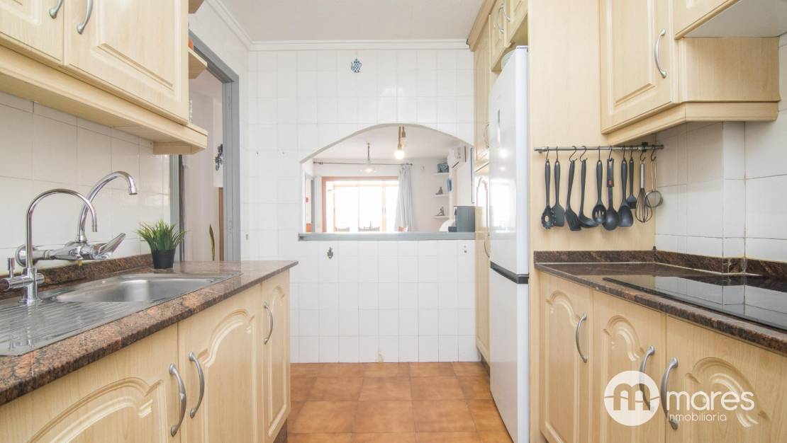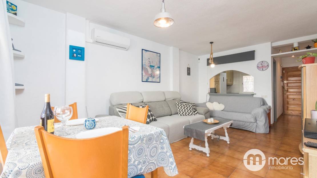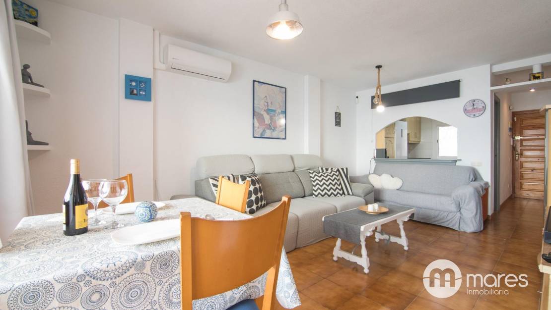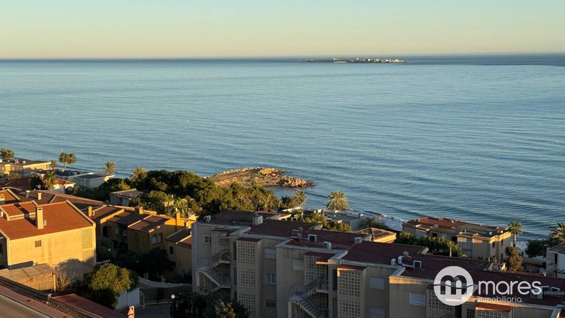 Oportunidad única de adquirir un maravilloso apartamento ubicado en la codiciada zona de Santa Pola del Este. Esta propiedad destaca por sus impresionantes vistas panorámicas al mar, que se pueden disfrutar desde diversas estancias. Se trata de un inmueble situado en esquina y completamente exterior, lo que garantiza una excelente luminosidad durante todo el día. El apartamento cuenta con dos terrazas: una acristalada ideal para aprovechar el espacio durante todo el año y otra descubierta perfecta para relajarse bajo el sol mediterráneo. La distribución es funcional y cómoda, sin apenas pasillo. Dispone de 3 habitaciones, salón comedor con cocina y un baño. Además, su ubicación estratégica permite acceder fácilmente a las playas cercanas así como a servicios locales como restaurantes y tiendas. Sin duda, esta propiedad representa no solo un hogar sino también un estilo de vida junto al mar.