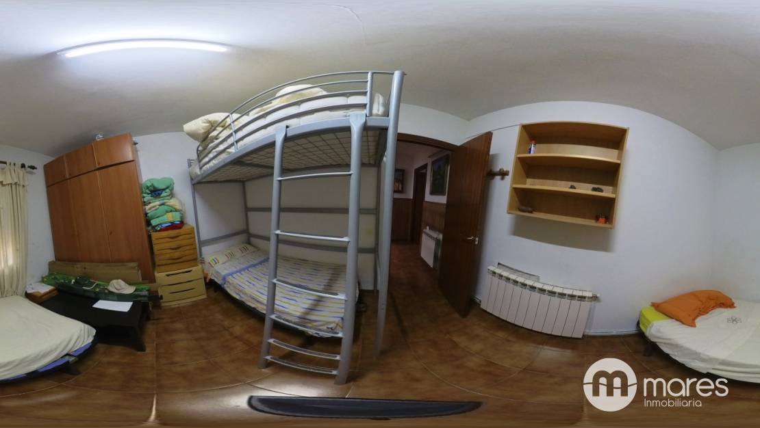 En la planta baja se encuentra el salón comedor con una maravillosa chimenea de casete que da servicios al salón, con acceso directo a la cocina independiente, un baño &;completo reformado para tener amplitud y acceso fácil además de 2 habitaciones de gran tamaña, una de ellas con litera y la otra con una cama grande .