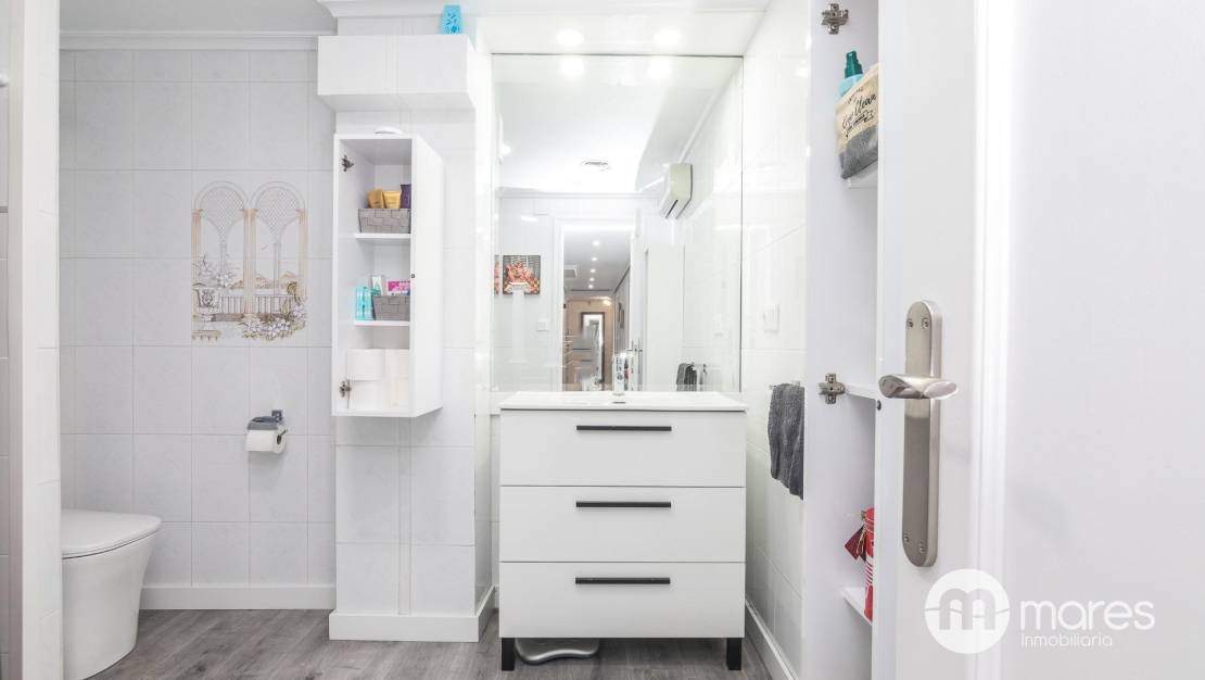 La vivienda dispone de tres dormitorios, incluyendo un dormitorio principal. La cocina está reformada y totalmente equipada, con una distribución cómoda y funcional para el día a día. Al fondo encontramos un baño completo reformado con amplio plato de ducha, mientras que el segundo baño se encuentra pendiente de finalización, contando ya con sanitarios y materiales disponibles.