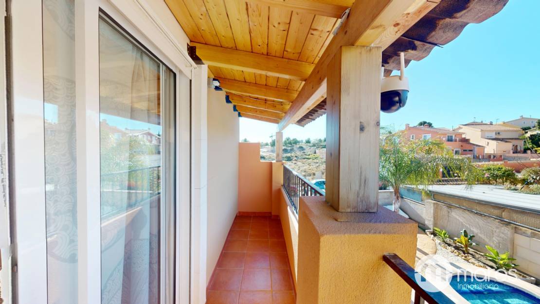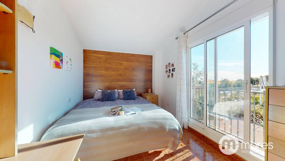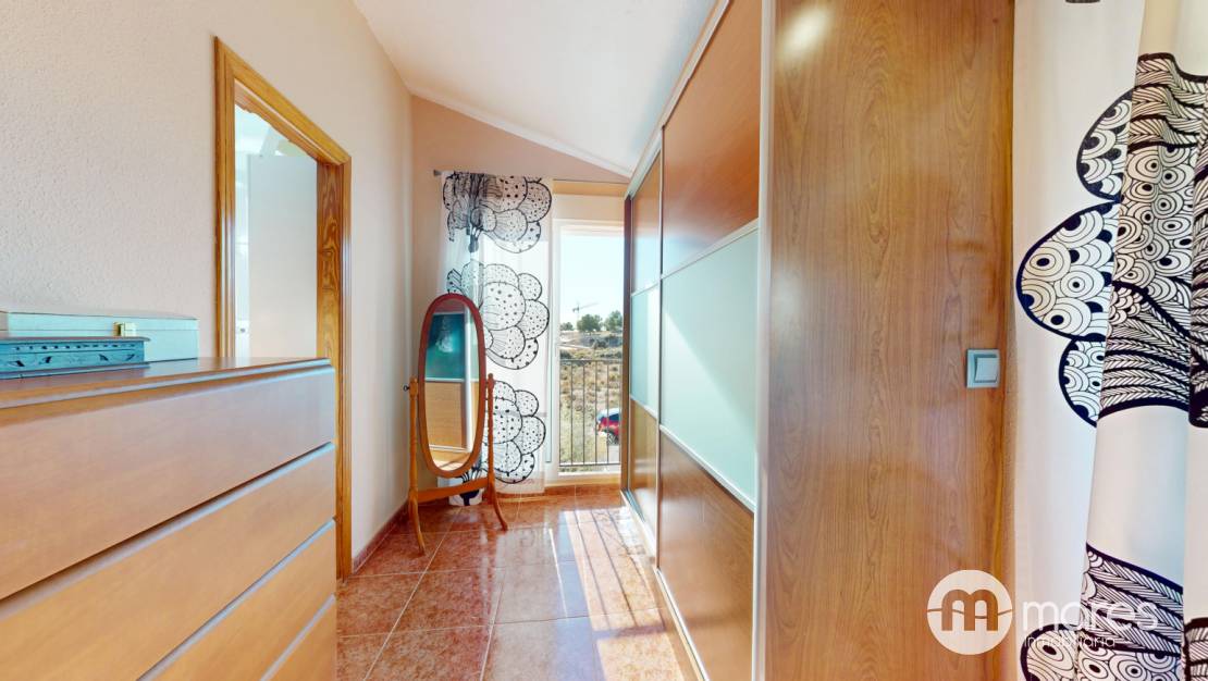 La planta superior dispone de 3 dormitorios y 2 baños completos, uno de ellos en suite. Dos de las habitaciones tienen salida a balcón con vistas despejadas.&;