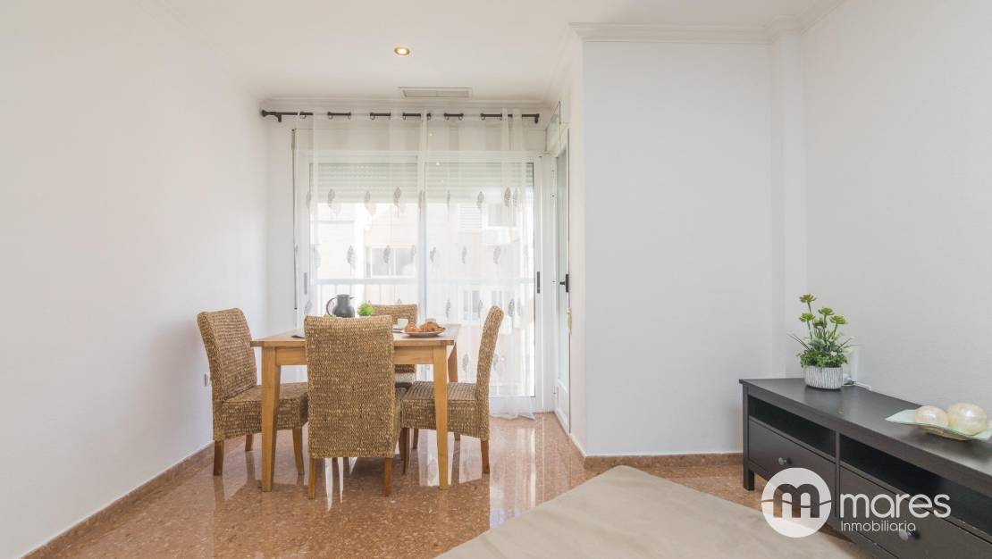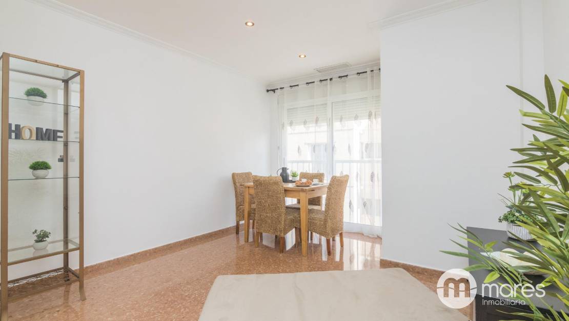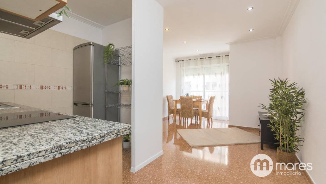 Al acceder, encontramos un salón - cocina integrado muy luminoso, que crea un ambiente moderno y acogedor, perfecto para disfrutar en familia o con amigos. Desde esta estancia, se accede a un gran mirador, que aporta ventilación y luz natural, convirtiéndose en un agradable ambiente. La vivienda dispone además de una zona de lavadero independiente.