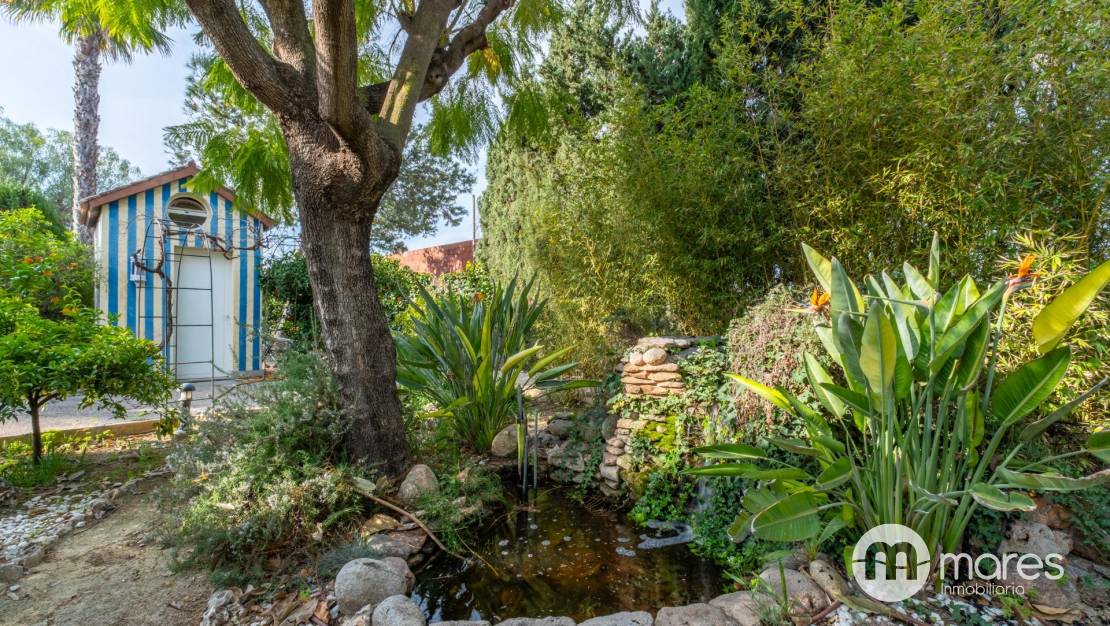 La parcela que rodea la vivienda es un auténtico jardín tropical privado, un oasis de paz y frescura que parece sacado de un resort de lujo. Grandes palmeras que se elevan majestuosas, arbolado maduro que ofrece sombra y privacidad, senderos que serpentean entre la vegetación, rincones secretos llenos de encanto y un pequeño estanque con fuente que aporta un sonido relajante y constante.